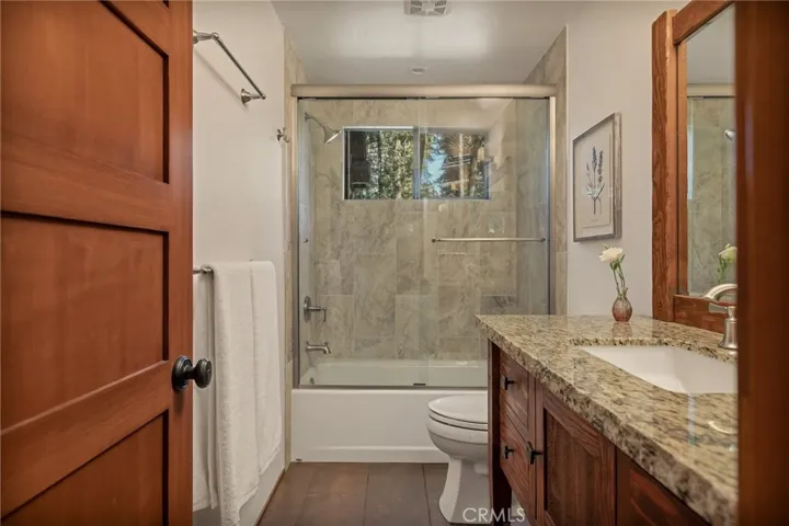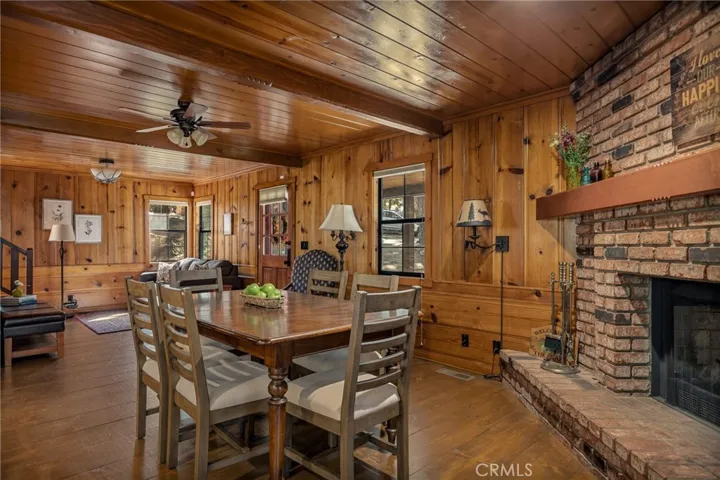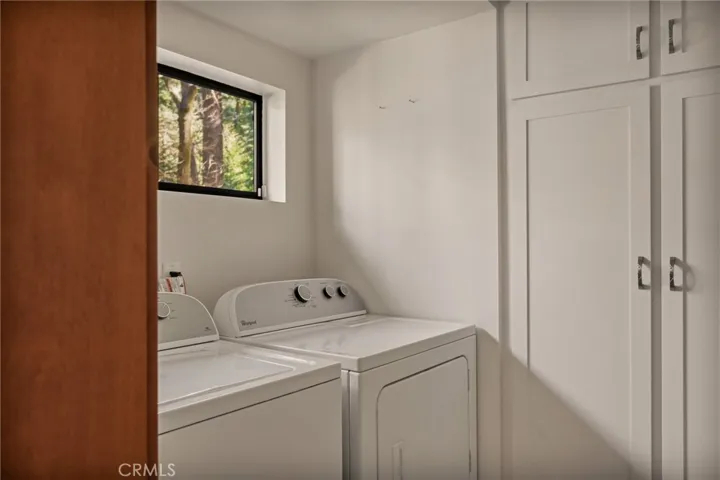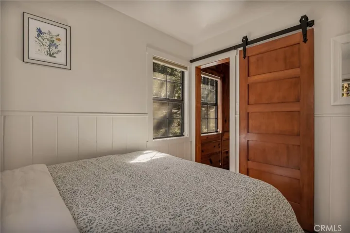 Live in coveted Crest Estates in this one of a kind mountain cabin with a picturesque covered porch, modern updates and privacy galore. Pull up to your near level entry property with huge circular driveway covered with towering pines, Oaks, Dogwoods, and lush mature landscaping. You almost cannot get closer to the front porch as it is basically level entry and extremely accessible from the driveway. Once inside you will find knotty pine, a sitting area, dining area with fireplace, and kitchen, all open concept. There is a peak through from the kitchen into the larger living area with vaulted ceilings and a wall of windows and a gas fireplace. From there you can enjoy the attached front deck area, or even back deck area. There is even a bedroom and bath on the main level. Upstairs is 2 areas, you can use them both for bedrooms or whatever your hearts desires. The lower floor is a large primary suite, with laundry room area, and access to the back yard. The property has been so well cared for and you will find pathways around the entire house that allow you to experience the Lake Arrowhead mountain lifestyle. Property boasts updates including dual pane windows, granite counters, tankless H2o heater, A/C, new furnace and duct work in 2022 including a 3 zoned system, an irrigation system, automatic water shut off switch and more. This home is situated on a dead end road that leads to private trails where you can explore even more, and take advantage of the acres of greenspace. Located close to Hwy 18 and not far form the Lake Arrowhead Village. Trust me, you won’t want to miss this one and it comes furnished, a complete package waiting just for you!