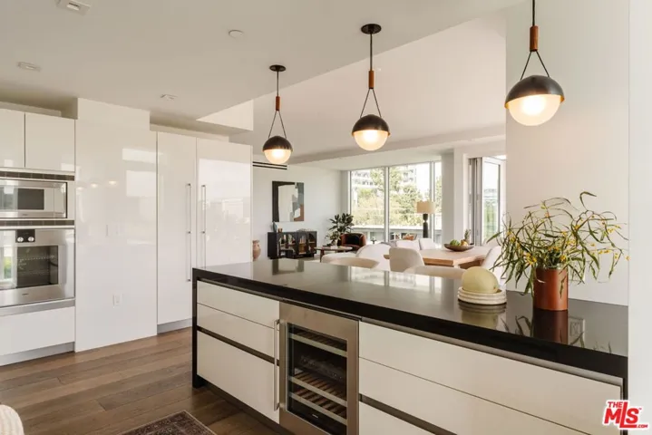 Set high within the exclusive Four Seasons Private Residences, this exceptional quarter-floor northeast corner home captures sweeping panoramic views from the Hollywood Hills across West Hollywood and onward to the Downtown skyline. Towering above its neighbors, walls of glass surround the residence and open to an expansive wraparound balcony, creating a seamless indoor-outdoor living experience and filling the interiors with natural light throughout the day. Private dual-elevators open directly into the unit’s foyer, offering a rare sense of arrival and privacy. The residence offers two en-suite bedrooms with walk-in closets, plus a den currently used as a third bedroom, allowing for flexible living, work, or guest accommodations. Positioned beside the iconic Four Seasons Hotel, the Private Residences rise as a boutique collection of just fifty-nine homes within a striking 13-story California Modern building. Interiors, curated by Martyn Lawrence Bullard, blend warmth and sophistication, while chef-caliber kitchens outfitted with Gaggenau appliances and spa-inspired baths reflect a commitment to both design and livability. Life here is defined by a service-driven lifestyle that extends well beyond the walls of the residence. Residents enjoy access to a full suite of five-star amenities, including a private restaurant with 24-hour in-residence dining, concierge and valet, and dedicated property management capable of preparing the home for arrival, from a fully stocked kitchen or private jet on return. Additional amenities include a saltwater pool with cabanas, a 19-seat IMAX private theatre and lounge, a Harley Pasternak-designed fitness center, residents’ club room, and available housekeeping services. Set at the intersection of West Hollywood and Beverly Hills, moments from some of Los Angeles’ most celebrated dining, shopping, and nightlife, this residence offers a rare balance of architectural presence, elevated design, five-star service, and absolute discretion: true Four Seasons living.