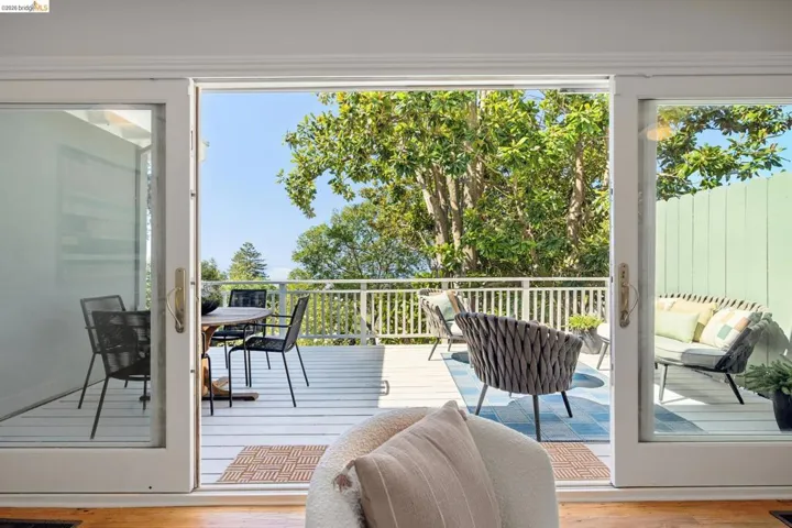 Charming Berkeley Hills cottage featuring a bright, open concept layout that creates a warm and inviting atmosphere. Sliding doors seamlessly connect the living space to the outdoors, enhancing the home’s natural flow. The primary bedroom showcases stunning, unobstructed Golden Gate Bridge views. Turn key and tastefully refreshed throughout, the home offers comfort and timeless appeal. Outside, beautifully landscaped front and backyard spaces are designed for indoor outdoor living, with multiple seating areas including a private, fenced front yard, a sun filled rear deck, and a thoughtfully designed garden setting with a dedicated seating area. Additional highlights include off street parking with a generous driveway and expansive lower level storage. Ideally located in a highly desirable neighborhood.