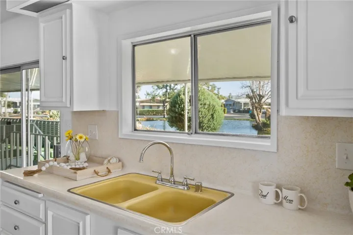 Welcome to 23820 Ironwood, located in the peaceful 55+ community of IL Sorrento. This beautifully refreshed manufactured home offers a bright and inviting atmosphere with fresh interior paint and brand-new carpet throughout, creating a true move-in-ready experience. The spacious living room is filled with natural light from large front windows and features a cozy fireplace with built-in shelving, perfect for both relaxing and entertaining.
