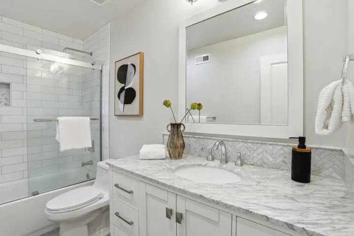 Modern Grandeur Meets Curated Luxury. Steps from Downtown Pleasanton, this masterfully reimagined two-story residence defines sophisticated Tri-Valley living. The light-filled interior features wide-plank flooring, plantation shutters, and an epicurean kitchen boasting a massive waterfall quartz island and professional-grade Thor appliances. The seamless flow leads to a family room with a classic white brick fireplace, opening to a private backyard oasis with lush lawns and expansive patios. Experience unparalleled connectivity. Walk to top-tier schools and vibrant dining, or enjoy a stress-free commute via the ACE Train (South Bay), BART (SF), and nearby Corporate Shuttles. Minutes from Costco and Whole Foods, this home offers a rare balance of small-town charm and elite urban accessibility. From the spa-like primary suite to the updated roof and systems, every detail is polished to perfection.