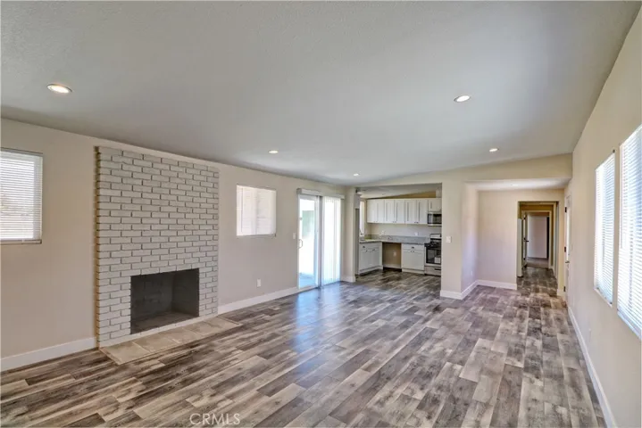 Updated, clean, and move-in ready! This Apple Valley home offers a bright, open feel with modern finishes throughout. The main living space features durable flooring, recessed lighting, and a brick fireplace that adds just the right amount of character, with natural light and easy access to the backyard. The kitchen is finished with granite countertops, stainless steel appliances, and a fresh, modern design that feels both functional and elevated. Both bedrooms are carpeted for comfort, including a primary suite with its own bathroom and a private slider to the backyard. Bathrooms continue the cohesive look with matching granite surfaces and updated finishes. Outside, the fully fenced backyard provides plenty of space to relax, entertain, or customize to your needs. A solid blend of comfort and style in a convenient Apple Valley location!