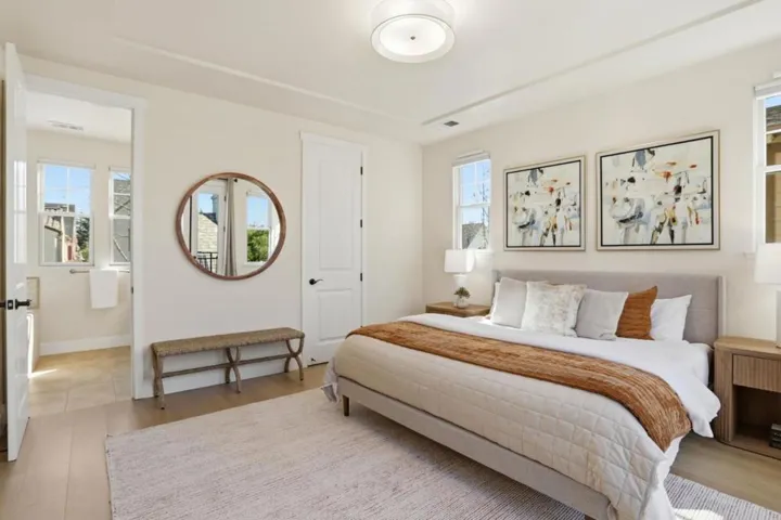 Fresh, open, and endlessly flexible – this stunning single-family home in a prime Mountain View location offers room to live, room to grow. Built in 2009, this exceptional home combines quality construction, soaring ceilings, and a versatile floor plan featuring a main-level bedroom, three upstairs bedrooms including the spacious primary suite, and an expansive great room. Filled with natural light, the vaulted great room is framed by windows on both sides and flows effortlessly into the kitchen and sun-lit dining area. The well-appointed island kitchen showcases granite countertops, a full tile backsplash and stainless appliances. A separate family room opens to a private courtyard and offers ideal flexibility as a formal dining room or office. The serene primary suite features abundant windows and two generous closets. Additional amenities include recessed lighting, air conditioning, multi-zone heating, Ethernet wiring, solar system and more. Two private outdoor spaces a charming courtyard and a stone-paved backyard provide wonderful options for entertaining and relaxation. Ideally situated near downtown Mountain View, Caltrain, Cuesta Park, schools, shopping, dining, and everyday conveniences, with easy access to Google and other major tech campuses.