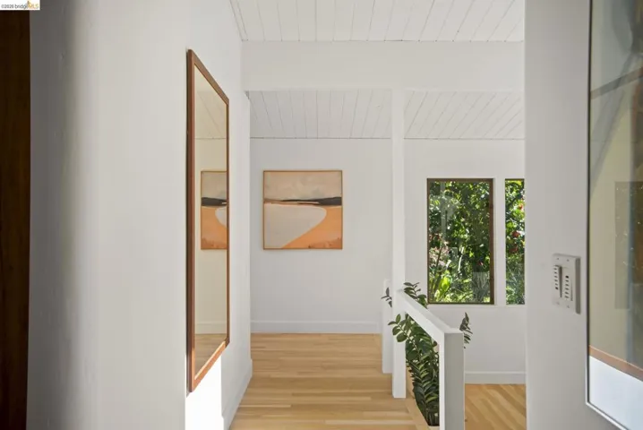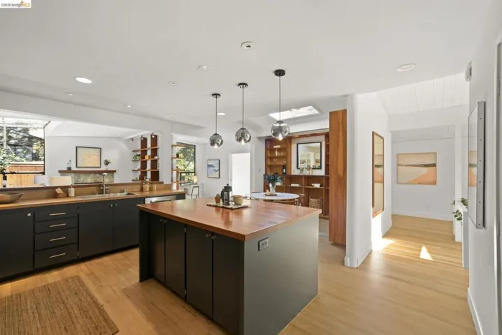 Wooded Montclair Hills Retreat on Private Road. Set on over 1/3 acre along a private road, this distinctive Oakland Hills residence offers exceptional privacy w/flowering trees, lush native plantings, mature wooded grounds & a relaxed Big Sur atmosphere rarely found this close to the city. The main level is anchored by a den w/dramatic corner wall of glass offering uninterrupted views into the surrounding tree canopy. The adjacent chef’s kitchen features maple floors, a large center island w/custom hardwood top, stone countertops, stainless steel appliances & pendant lighting, w/a natural flow toward the den ideal for entertaining. A dining room connects to a sunken living room w/its own fireplace & slider doors opening onto rear gardens & spacious decks w/a Japanese-style wood hot tub & elevated forested views. Upstairs, the primary suite includes a refreshed bath & private deck, w/two additional bedrooms w/forested outlooks & a refreshed hall bath completing the upper level. A pergola-beamed two-car garage w/direct interior access & a classic Airstream ideal as a home office complete the grounds. Backup generator & EV charger included. Minutes from Montclair Village shops & restaurants & nearby railroad trail, access & Highway 13. Open Saturday & Sunday, come fall in love!