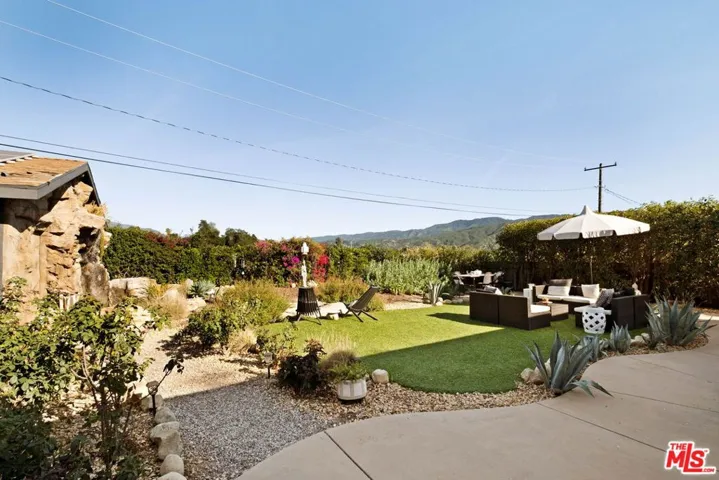 The path up to this house gives you your first hint of what’s inside: mature landscaping, great views, and a home that actually lives as well as it looks. The living room is big and bright, and it connects naturally to the kitchen without feeling like two separate spaces. The layout just makes sense whether you’re cooking while someone else is on the couch, or you’ve got people over, nothing feels cramped or disconnected. The backyard is where this place really stands out. There’s a water feature adding soothing ambient sound, and behind it, you’re looking straight out at the mountains and the valley below. It’s the kind of view you don’t get tired of. There’s plenty of room to sit outside, have people over, or just do nothing but soak up the Pink Moment. The primary bedroom has its own door to the backyard, so you can step right outside in the morning without going through the whole house. The other two bedrooms get gorgeous natural light and are solid in size. The detached garage is currently unfinished, which gives you some flexibility depending on what you need: workshop, studio, extra storage, whatever fits. You’re also close enough to walk to Ojai’s shops and restaurants, and the trailheads aren’t far either. It’s a genuinely easy place to live.