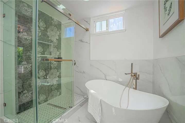 The bathrooms have been thoughtfully upgraded with a luxurious, spa-like feel, including a freestanding soaking tub, frameless glass showers, and designer touches that create a peaceful retreat.