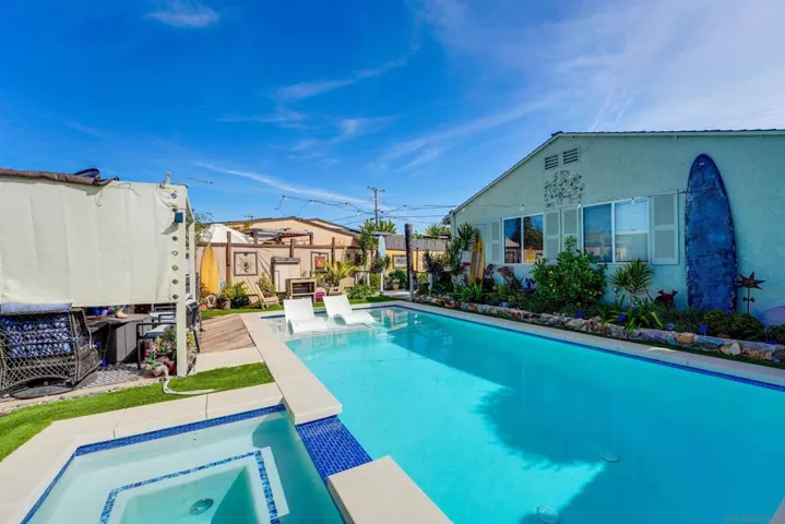 Proudly presenting a cozy 3-bedroom, 1.5-bathroom home that lives much larger than its square footage suggests. Situated on a fully gated corner lot with desirable alley access, this property offers an outstanding balance of comfortable living and impressive outdoor amenities.The standout feature is the expansive, private backyard, complete with a recently built pool and spa set against lush, mature landscaping.The home also includes an attached 2-car garage and convenient interior laundry.Perfectly positioned just minutes from major transit, local amenities, the bay, beaches, and the newly redesigned Clairemont Square.
