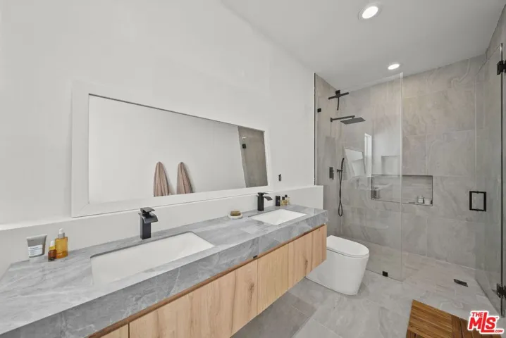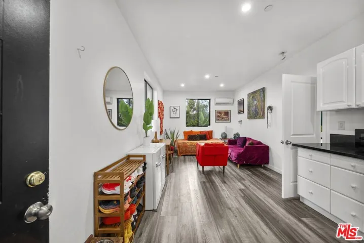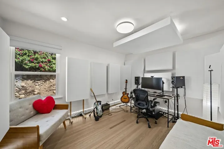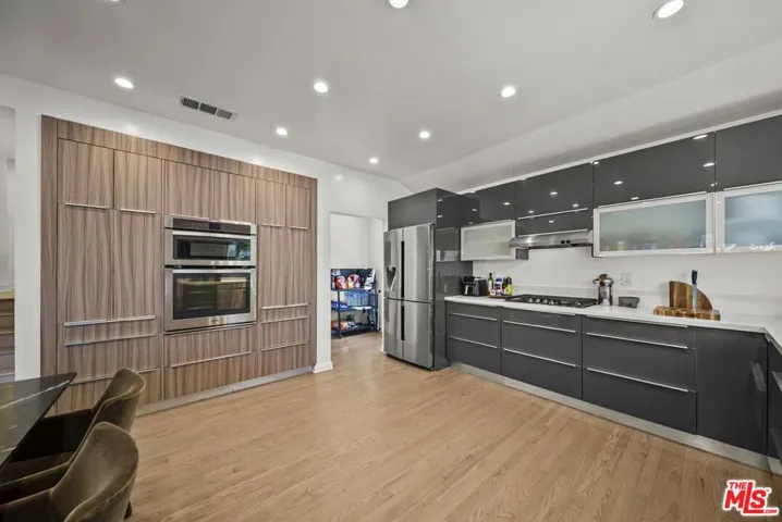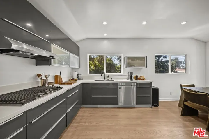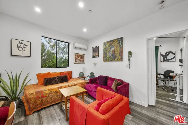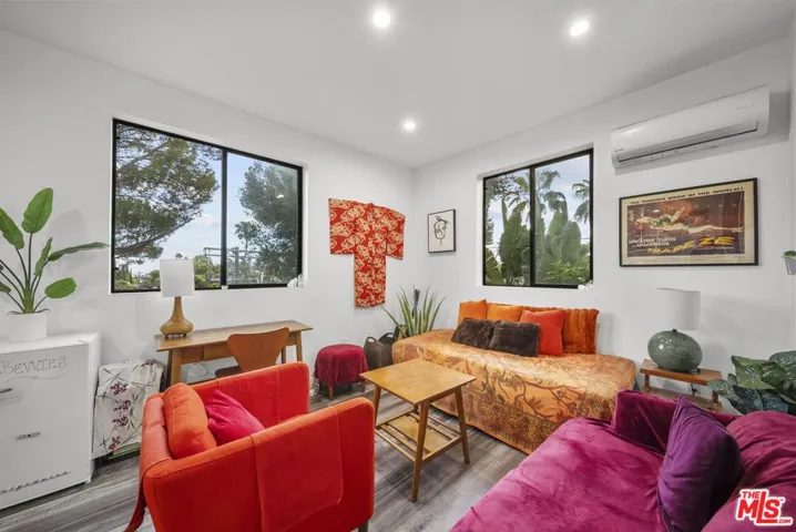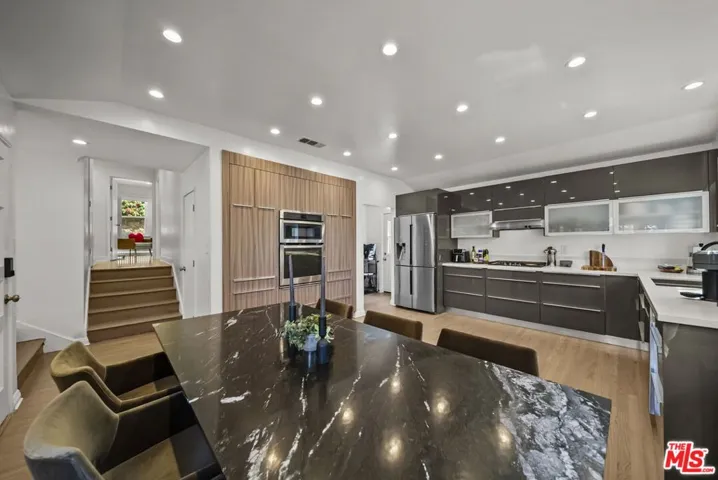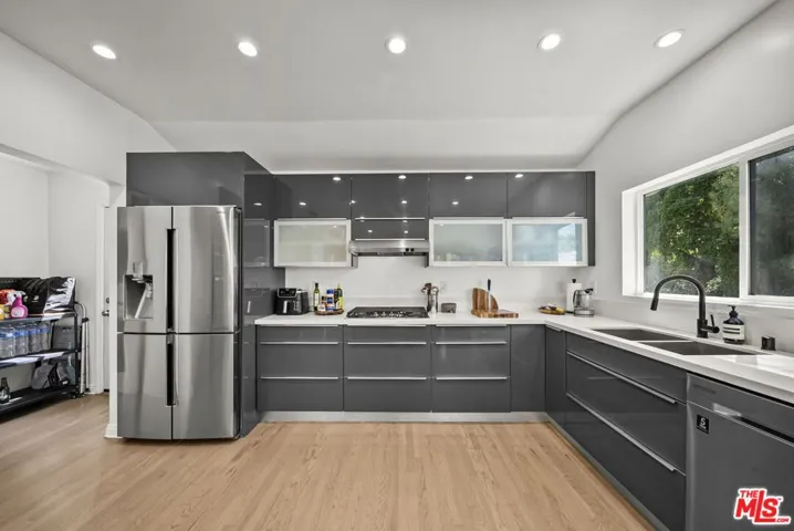 Nestled in the heart of the historic Hollywood Dell, this gem offers a rare blend of modern sophistication and tranquil canyon living. This meticulously remodeled contemporary residence features an open concept floor plan defined by soaring ceilings and rich hardwood floors. Floor to ceiling glass sliders in the main living area frame breathtaking, unobstructed views of the Los Angeles city lights and rolling hills. The gourmet kitchen serves as the centerpiece of the home, boasting sleek Caesarstone countertops, designer cabinetry, and premium stainless steel appliances.The main residence includes three spacious bedrooms and two and a half bathrooms, all updated with high end finishes and modern systems. Adding incredible value to this property is a fully permitted, 500 square foot detached Accessory Dwelling Unit. Complete with its own bedroom, bathroom, and private viewing deck, this versatile space is perfect for a creative studio, guest house, or high yield rental opportunity. Experience the ultimate California lifestyle with multiple outdoor entertaining decks and the convenience of an attached garage. Located just minutes from the Hollywood Bowl and Griffith Park hiking trails, this home provides a secluded sanctuary without sacrificing proximity to the best dining and entertainment in the city. With newer HVAC, updated plumbing, and turn key interiors, this Hollywood Hills gem is ready for its next chapter.
