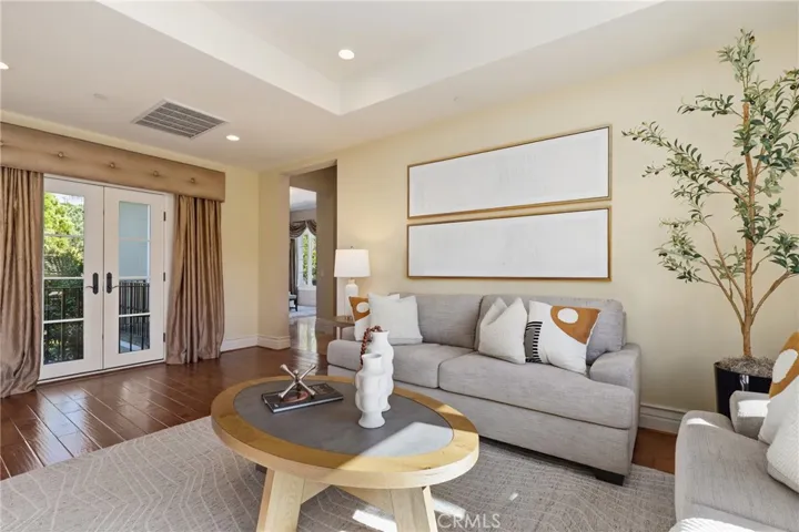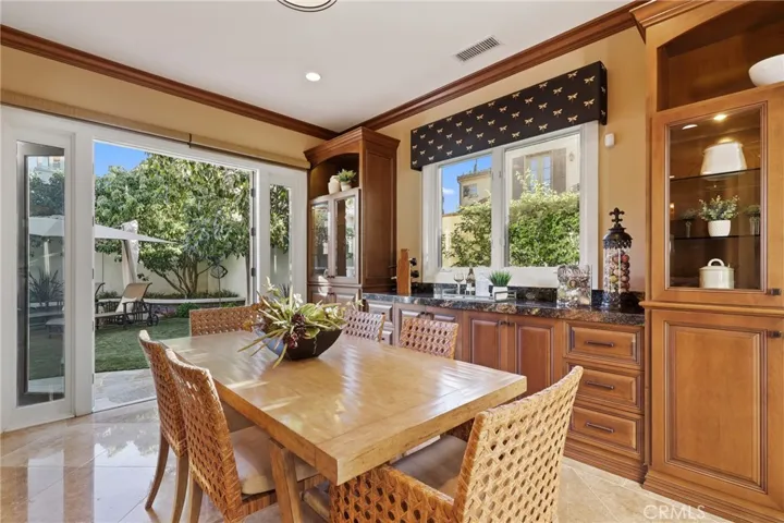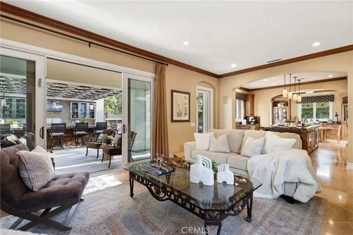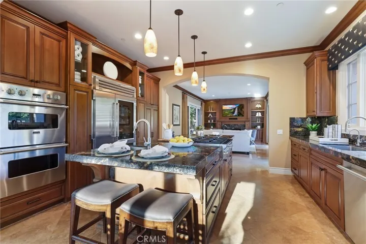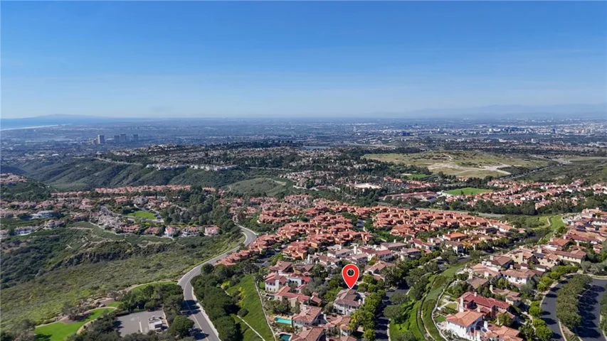 Gracefully positioned on a tranquil cul-de-sac within the prestigious guard-gated Ocean Heights enclave of Newport Coast, this elegant residence offers 4 bedrooms, 4.5 baths, and 4,000 square feet prime coastal living space. An inviting courtyard framed by mature olive trees creates a warm arrival, setting the tone for the elegance that unfolds inside. A dramatic entry welcomes guests with soaring 20-foot ceilings and custom stone flooring, creating a grand first impression. The main level is designed for seamless indoor-outdoor living and features a spacious living room, formal dining room, family room, and sunlit breakfast nook, each with French doors opening to beautifully landscaped outdoor spaces. The chef’s kitchen showcases custom cabinetry, a generous center island, and professional-grade appliances including Viking double ovens and six-burner gas cooktop, Sub-Zero refrigeration, Thermador dishwasher, and Perlick beverage refrigerator. Everpure water filtration, designer lighting, and motorized window shades add sophistication. The family room features a custom built-in entertainment wall, gas fireplace, integrated lighting, and surround sound wiring. The resort-inspired backyard was completely redesigned with a spa and water feature, stone pavers, low-maintenance landscaping with premium artificial turf, and a fully equipped outdoor kitchen outfitted with Lynx grilling equipment, dual gas burners, sink, beverage refrigerator, and custom Danver stainless steel cabinetry. The central courtyard offers a gas fire pit with seating for intimate gatherings and integrated outdoor speakers. Inside, a private home theater features a 130-inch Stewart screen, Sony projector, custom lighting, enhanced acoustics, and seating for 7 with advanced surround sound. The luxurious primary suite has been extensively designed and includes new flooring, custom vanities with under-cabinet lighting, an oversized walk-in shower, soaking tub, creating a spa-like retreat. Additional upgrades include a Navien tankless water heater, Flo by Moen smart water shutoff system, earthquake gas shutoff valve, EV charging outlet, and extensive garage storage. Residents enjoy access to Newport Coast Community Association amenities including clubhouse, Olympic-size pool, tennis courts, and recreation facilities. Just minutes from Crystal Cove beaches, Pelican Hill Resort and Golf Club, and the world-class shopping and dining of Fashion Island and Corona del Mar.