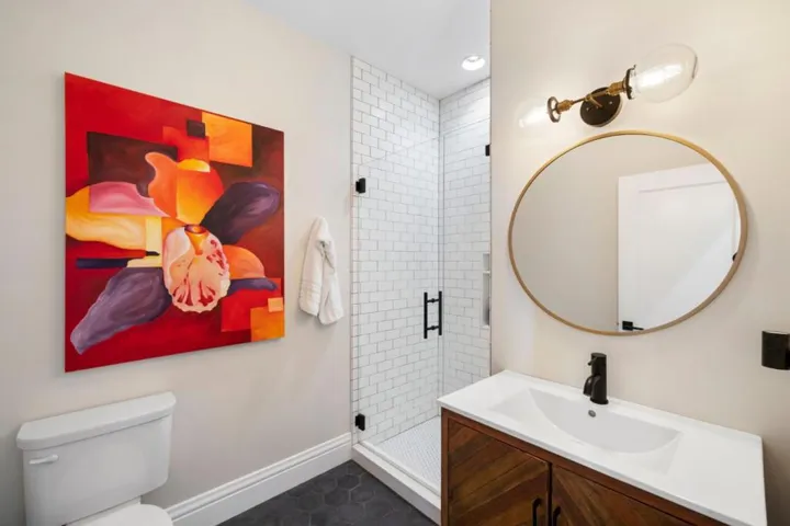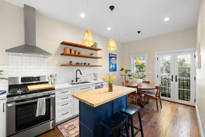 Tucked into the heart of desirable Bernal Heights, 727 Andover Street is a truly one-of-a-kind residence that seamlessly blends modern sophistication with timeless San Francisco character. Completely reimagined in 2019, this 3-bedroom, 3-bathroom home has been meticulously redesigned with every detail in mind, offering the feel of new construction with touches of vintage flair. The main level features a primary suite, an additional bedroom, and a full bath, providing comfortable single-level living. Hardwood floors, high ceilings, and bay windows in the living room bring in an abundance of natural light, creating a bright and welcoming atmosphere. The dining area and primary suite each open to Juliet balconies overlooking a landscaped backyard patio with a canopy of mature trees and paver hardscaping, creating a seamless indoor-outdoor flow ideal for both relaxing and entertaining. The lower level offers a versatile space with a bedroom or bonus room, full bath, and private entrance ideal for guests, family, or a home office, offering flexibility to suit a variety of needs. Conveniently located near Cortland Ave., parks, dining, and commuter routes, 727 Andover Street presents a rare opportunity to own a true gem in one of San Franciscos most desirable neighborhoods.