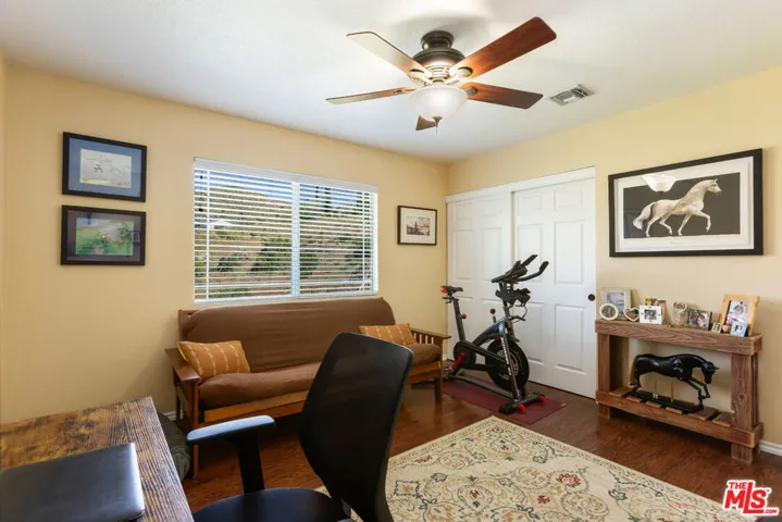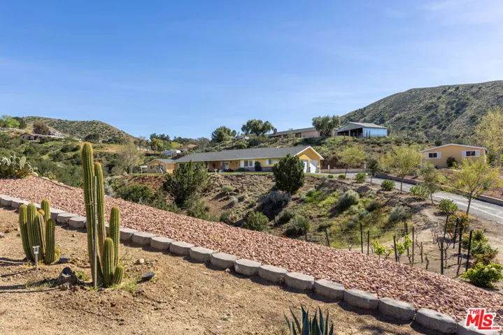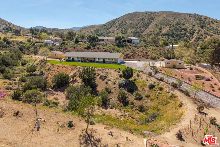 Get that peaceful easy feeling. Welcome to Acton living with plenty of space and stunning natural surroundings. This spectacular remodeled home sits on nearly two acres, tucked privately off its paved cul-de-sac street. The lush green lawn and charming brick pathway welcome you to your own oasis, complete with breathtaking canyon & mountain views. Solar lighting lines the driveway, creating an enchanting approach to this serene country retreat located in one of Acton’s well-established & well-desired neighborhoods. Enter beneath the large, covered patio with lighting, ceiling fans, and heaters, perfect for relaxing day or night. Open the double front doors with rain-glass, into a grand great room where the eye is immediately drawn to the stunning stacked-stone fireplace and the gorgeous, totally remodeled kitchen. New Pergo laminate wood flooring flows throughout the home, enhancing the bright and open feel. The beautifully redesigned kitchen features quartz countertops, bright white cabinetry with soft-close drawers, new tile, new lighting, stainless steel appliances, and a large picture window that frames the outdoor scenery. A versatile bonus room just off the kitchen offers the perfect space for a formal dining room, office, playroom, or creative studio. Freshly painted, and truly move-in ready, the home offers four spacious bedrooms and three updated bathrooms, providing plenty of flexibility for family, guests, or work-from-home living. The remodeled primary suite feels like a private retreat with its own electric fireplace, double closets, and a sliding door that opens to its own brick patio with quiet views. The updated bathrooms feature granite countertops and shower/tub combinations, with one bathroom offering heated floors for added comfort. Outside, the meticulously landscaped grounds showcase mature trees, colorful annuals, and generous space for entertaining or simply enjoying the tranquility. The property also features RV parking with two sets of hookups, garage with its own workbench area, and bathroom with mud sink, multiple outbuildings for workshops or storage, and abundant outdoor parking. Additional highlights include city water, natural gas, underground utilities, septic system, water softener, and a 7.5 kW roof-mounted solar system (lease to be assumed or paid off in escrow). Classic Acton, “Of Course”.