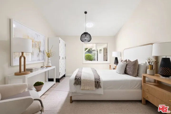 Welcome to 24364 Crestlawn St, a beautifully updated residence set on a peaceful cul-de-sac, offering privacy, sophistication, and effortless California living. From the moment you enter, the home makes a striking impression with its open-concept design, soaring vaulted ceilings with skylights, and a seamless indoor-outdoor flow bathed in natural light. Every detail has been thoughtfully curated, showcasing refined finishes and craftsmanship throughout. The formal living and dining rooms are elegant and inviting, anchored by a statement fireplace and enhanced by bespoke built-ins and millwork. Charming French doors open to the covered rear terrace, creating a natural extension of the living space – ideal for both intimate gatherings and large-scale entertaining. Beyond an elegant archway, the expansive chef’s kitchen is designed to impress, featuring a generous center island, sunlit breakfast area, abundant storage, and a charming adjacent office alcove. A well-appointed laundry room with direct access to the two-car garage adds convenience to the home’s highly functional layout. The primary suite serves as a private sanctuary, opening directly to the rear grounds. It offers multiple closets, including a spacious walk-in, and a spa-inspired bath complete with a soaking tub designed for relaxation. Three additional bedrooms along with a versatile bonus room provide exceptional flexibility for a media lounge, office, playroom, or gym. Integrated smart home features provide control of lighting, audio, pool and spa, and Nest climate systems. The outdoor setting rivals that of a private resort. Lush, manicured grounds reveal multiple entertaining and lounge areas, a sprawling turf lawn, fire feature, putting green, and an outdoor mounted TV. A built-in BBQ with refrigeration anchors the space, while the resort-style pool and hut tub – complete with a Baja shelf and cascading waterfall – serve as a stunning centerpiece to this exceptional environment. Ideally located near Hidden Hills, scenic hiking trails, desirable schools, and prime shopping and dining including The Commons at Calabasas, 24364 Crestlawn St presents a rare opportunity to experience elevated living in one of the San Fernando Valley’s most desirable enclaves.