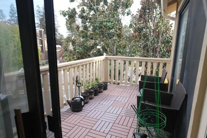 MOVE-IN READY! Spacious 3-bedroom, 2-bath condo in the desirable Morgan Village community. This second-floor corner unit features vaulted ceilings, arched windows, and great natural light throughout. Bright living room with cozy gas fireplace opens to a private balcony. The kitchen offers a large bay window with mountain views. Primary suite includes mirrored double closets, plus in-unit laundry and laminate flooring throughout. Enjoy views of the pool and tennis courts. Includes 2-car tandem garage, 1 assigned space, and ample street parking. Community amenities include pools, tennis courts, and lush landscaping. Conveniently located near Hwy 101, shopping, dining, parks, and hiking trails.