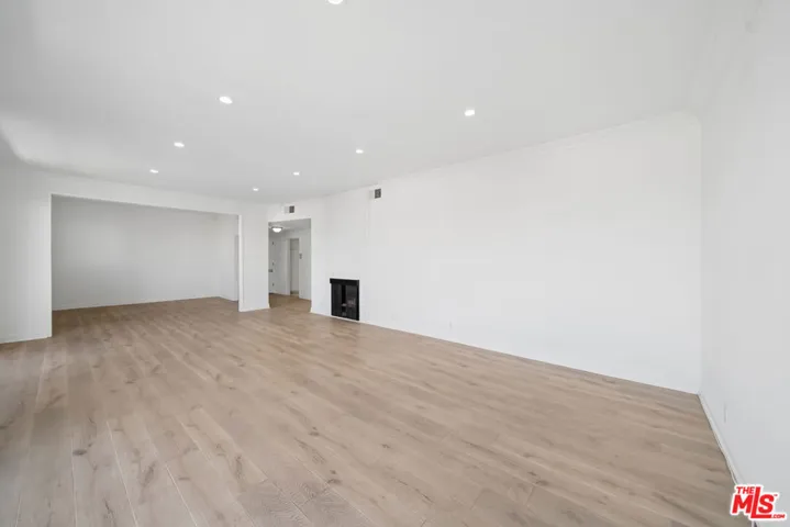 Bright and extra-spacious 2-bedroom, 2-bath top-floor residence in a prime Beverly Hills location. This open-layout home features new kitchen countertops, stainless steel appliances, double oven, wood flooring throughout, recessed lighting, and a large private balcony accessed through oversized sliding doors. The expansive living room includes a fireplace and wet bar, creating an ideal entertaining environment. The primary suite offers a dressing area with extensive closet space and an en-suite bath with separate shower and tub. Additional highlights include central A/C, a pool, two assigned parking spaces, and in-unit washer/dryer hookups. Close to Beverly Drive dining, Century City shopping, Roxbury Park, and local markets. Square footage is approximate and not verified.