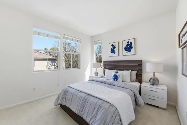Welcome to this spacious 4-bedroom, 3-bath single-family home in the highly desirable Whisman Station community. Featuring soaring ceilings, oversized dual-pane windows, and a light-filled open floorplan, this home offers an inviting layout with great everyday functionality. The main living areas flow seamlessly, with the kitchen opening to the family room with fireplace and direct access to the backyard. A highly sought-after feature is the bedroom and full bathroom on the ground floor, ideal for guests, extended family, in-law quarters, or a private home office. Upstairs, the primary suite offers a comfortable retreat with a large en-suite bath, dual-sink vanity, soaking tub, separate shower, and walk-in closet. Recent exterior improvements include fresh exterior paint, a replaced garage door, and a new garage door opener. The home presents a wonderful opportunity for buyers to add their own personal touches and make it their own. HOA dues of $257/month include access to the clubhouse, pool, spa, and playground. Prime location near parks, Castro Street dining, Caltrain, VTA, and major tech campuses including Google, LinkedIn, and Microsoft. Conveniently located near Magnolia Park and Vargas Elementary, with easy bike access to transit.