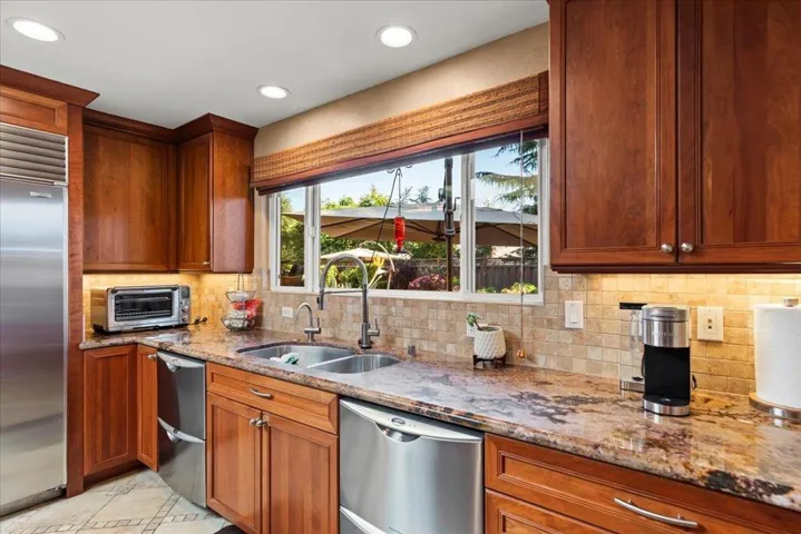 The Best of CA Luxury Resort Style living is found at this stunning Custom Remodeled 1 level home on a rare almost 1/2 acre lot! Enjoy open concept living w/seamless indoor-outdoor entertaining! The Gourmet Chef’s kitchen, open to the inviting great room, features professional grade stainless appliances: Subzero Refrigerator, Viking double ovens, Viking gas range, 2 Fisher & Paykel dishwashers & a Dacor warming drawer. Abundant prep space on slab counters w/many cabinets for storage along with a roomy pantry. The large island has a sink & bar seating along with having a separate breakfast room. The primary is impressive w/volume ceilings, a large walk in closet, seating area & a spa-like bath w/a heated floor. The junior primary is wonderful for guests & has a 2nd office. The main office is impressive & perfect for productive work from home. 4 total full baths,1 conveniently situated w/an entrance by the pool. The private backyard oasis is like being on vacation w/an outdoor kitchen, pool, spa, waterfalls, an exterior fireplace, firepit & tranquil lush grounds. Other outstanding features: Owned solar w/battery backup, 2 car chargers, wood & tile flooring, coffered ceilings, Sonos audio & more! Added Bonus for the community: Glenmoor Gardens has pickleball, tennis & a pool!