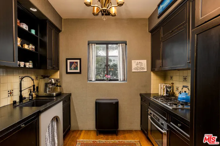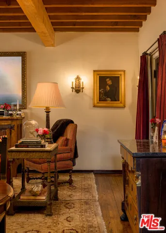 “Mr. DeMille, I’m ready for my Close-Up.” A rare opportunity to own a piece of Hollywood history at The Legendary El Cabrillo, the iconic historic residence originally commissioned by Cecil B. DeMille and designed by celebrated architects Arthur and Nina Zwebell. Meticulously restored by noted designer Xorin Balbes and Saxony Design, this exceptional home is a masterclass in old Hollywood romance and architectural pedigree. Dramatic beamed ceilings, rich hardwood floors, handcrafted tile, intricate moldings, authentic ironwork, casement windows, and a romantic fireplace create a residence of extraordinary character and atmosphere.The thoughtfully updated kitchen is appointed with Bosch appliances, while modern comforts include an in-unit stackable washer and dryer. A true rarity at El Cabrillo, the residence also includes a deeded parking space within the gated parking area.Designated as part of an LA Historic-Cultural Monument, El Cabrillo also benefits from the Mills Act, offering substantial property tax advantages to the owner, recently extended for the next ten years.