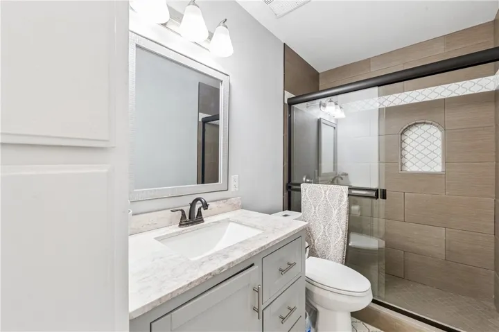 Experience resort style living in this stunning penthouse condo, where comfort meets style in a beautifully curated setting. This spacious 2-bedroom, 2-bathroom residence offers an ideal layout with abundant natural light and serene views from not one, but two private balconies. The 2nd bedroom is located upstairs with it’s own private bathroom, balcony and huge storage area. Step inside to discover a thoughtfully remodeled kitchen featuring sleek granite countertops, modern finishes, breakfast bar and ample cabinetry, making it as functional as it is stylish. Both bathrooms have been tastefully updated with classic subway tile, creating a clean, timeless look. The inviting living area is anchored by a cozy fireplace adorned with custom tile work, adding warmth and character to the space. Every detail has been designed to enhance comfort and livability. Surrounded by lush, mature trees and beautifully landscaped grounds, the community offers winding paths and tranquil waterfalls that create a peaceful, retreat-like atmosphere right outside your door. This penthouse condo combines modern upgrades with natural beauty—an exceptional place to call home.