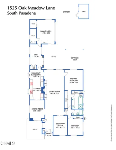 Nestled on a picturesque, tree-lined street in the heart of South Pasadena’s most coveted neighborhoods, 1525 Oak Meadow Lane is a single-level mid-century traditional home offering comfort, style, and timeless appeal.The home features 3 bedrooms, 2 bathrooms, and a flexible bonus room, providing a functional layout for both everyday living and entertaining. A welcoming entry leads to a bright and spacious living room with vaulted ceilings, abundant natural light, and ample wall space for art or a grand piano.The kitchen is thoughtfully designed with generous cabinetry, stainless steel appliances, plenty of counter space, and a sunny breakfast area. The formal dining room opens to a charming patio, creating an easy flow for indoor-outdoor dining and relaxed gatherings.The bedrooms are well-sized, including a spacious primary suite with a sitting area, large closets, and an en-suite bath. Two additional bedrooms share a hallway bath, while a separate laundry room or home office connects to a bonus family or media room.Outdoor spaces are a highlight, with lush gardens, a private courtyard, multiple patios, and a pergola-covered seating area–perfect for enjoying Southern California’s indoor-outdoor lifestyle.Located near Garfield Park, the YMCA, and South Pasadena’s award-winning schools, and just minutes from local shops, dining, Pasadena, and downtown Los Angeles, this home offers both convenience and charm.A rare opportunity to own a special home in one of South Pasadena’s most desirable neighborhoods.