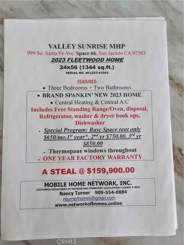 WELCOME TO YOUR “NEW HOME”~~~~Never been lived in nor registered~~~2023 Fleetwood 24X56 Three Bedroom, One Full bathroom, one with shower only. Gorgeous laminate flooring throughout, stunning KITCHEN ISLAND BREAKFAST BAR, cabinetry all self closing, dishwasher, freestanding range/oven, refrigerator, disposal, washer & dryer hookups in spacious laundry room, entry from carport. Complete with Central Heating & Air Conditioning, a ONE YEAR FACTORY WARRANTY INCLUDED ~~~~ Take advantage of this amazing rent incentive starting at just $650.00/month.