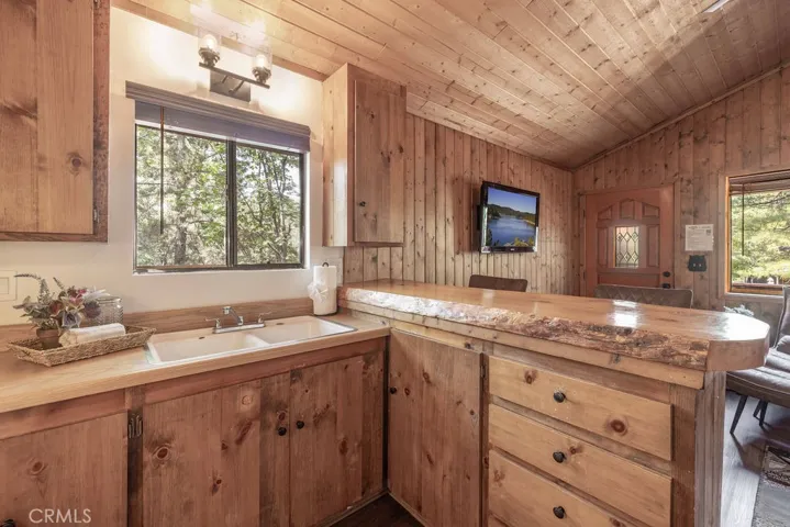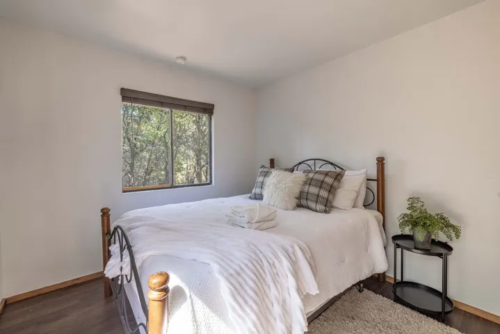 Welcome to 790 Pine Lane—a charming mountain retreat set on a rare 4,750 sq. ft. double lot in the heart of Sugarloaf, offering both immediate enjoyment and future potential. This inviting single-story cabin blends classic mountain character with thoughtful updates. Inside, you’re welcomed by warm tongue-and-groove walls, knotty pine vaulted ceilings, and an open-concept living space centered around a beautiful rock fireplace—creating an ideal setting to relax year-round. The kitchen, dining, and living areas flow seamlessly, offering both functionality and flexibility. Improvements include new flooring, updated lighting, modern electrical outlets, and a refreshed bathroom vanity—adding comfort and style while preserving the cabin’s rustic appeal. The home features two bedrooms, including a rear bedroom with direct access to a quiet back deck. Additional highlights include a charming from deck, a fully fenced yard, in-home laundry, newer roof, and fresh interior paint. Offered fully furnished, this property is move-in ready and well-suited for a variety of uses. What truly sets this property apart is the included adjacent vacant lot with its own APN, offering exceptional flexibility—build, expand, or hold for future use or potential resale. Located near the National Forest, the property offers convenient access to outdoor recreation, with Big Bear Lake, ski resorts, and village amenities just a short drive away. 790 Pine Lane presents a unique opportunity combining location, character, and versatility.
