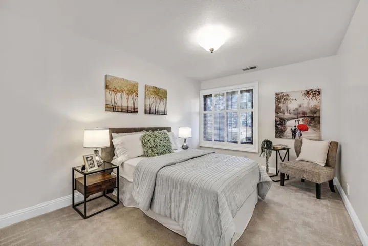 DESIRABLE SINGLE-STORY END UNIT TUCKED IN A PEACEFUL CORNER ON ALAMEDA’S BAY FARM ISLAND* HIGH CEILINGS, NEW CUSTOM INTERIOR PAINT, UPDATED KITCHEN, GRANITE COUNTERTOPS, DESIGNER CABINETS* NEWER STAINLESS-STEEL APPLIANCES, FREE-STANDING ELECTRIC RANGE/OVEN, BUILT-IN MICROWAVE* TILE FLOORING, EAT IN KITCHEN, SLIDERS TO PEACEFUL PATIO, COMBINATION LIVING/DINING ROOM* PLENTIFUL NATURAL LIGHT, FIREPLACE, BRICK SURROUND, FULL BATHROOM* SINGLE SINK VANITY, TUB/SHOWER COMBINATION* SPACIOUS PRIMARY BEDROOM, LARGE WALK-IN CLOSET, SINGLE SINK VANITY* STALL SHOWER, VINYL FLOORING, UPDATED TRIPLE-PANE WINDOWS, INSIDE LAUNDRY ROOM, WASHER/DRYER INCLUDED* NEWER FURNACE & GAS WATER HEATER, DETACHED 2-CAR GARAGE, ROLL-UP DOOR* AUTOMATIC OPENER,STORAGE SHELVES & CABINETS, HOA $580 PER MONTH INCLUDES EXTERIOR* COMMON AREA LANDSCAPE & MAINTENANCE, COMMUNITY POOL* CLUBHOUSE, WATER* QUIET LOCATION NEAR END OF STREET* CLOSE TO TOP SCHOOLS, SHORELINE TRAILS & PARKS, SHOPPING, & SF BAY FERRY* DON’T MISS IT!