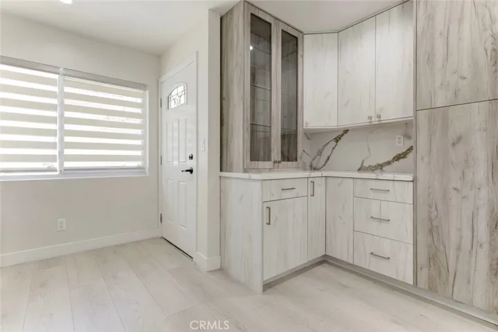 The bright, open floor plan offers recessed lighting, large windows, and updated flooring throughout. The remodeled kitchen features modern cabinetry, sleek countertops, and flows seamlessly into the living and dining areas, perfect for everyday living and entertaining. Both bathrooms have been tastefully updated with contemporary finishes.