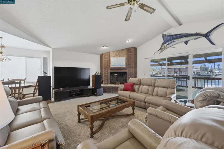 Enjoy stunning water views from this spacious single story waterfront home with private boat dock. Popular floor plan features massive great room and soaring ceilings. 3 bedrooms, 2.5 baths, large kitchen with breakfast nook, dining area, wet bar, and laundry room. Large primary suite features sliding glass door to deck and a huge walk-in closet. Enjoy spectacular sunsets and breathtaking water views from your deck! Perfect for entertaining! Includes a U-shaped boat dock with room for all of your water toys! Access to over a thousand miles of delta waterways from your backyard! NO HOA!