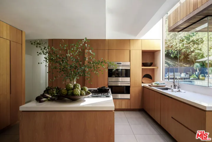 Available for long-term lease, furnished or unfurnished. Experience elevated living in this masterfully reimagined Mid-Century modern residence, ideally located within the acclaimed Wonderland Avenue Elementary School district and near the Mulholland Tennis Club, in Laurel Canyon’s exclusive Wonderland Park enclave. This fully furnished architectural masterpiece seamlessly blends historic charm with contemporary luxury, offering an unparalleled rental opportunity in one of Los Angeles’ most coveted neighborhoods. The thoughtfully designed floor plan showcases a dramatic thirty-foot skylight that floods the interior with natural light, while floor-to-ceiling sliding glass doors create a seamless connection to private outdoor spaces. The five-bedroom residence features a luxurious primary suite with sweeping canyon views, perfect for those seeking a sophisticated work-from-home lifestyle with its treehouse-inspired office. The gourmet kitchen serves as the home’s centerpiece, appointed with custom white oak cabinetry and dual Caesarstone waterfall islands ideal for entertaining. Additional amenities include a dedicated screening room, whole-home Control 4 system with built-in speakers, and a sparkling heated pool surrounded by mature landscaping. This turn-key offering comes completely furnished with designer selections and sustainably minded features including solar power. Nestled among architectural landmarks including Pierre Koenig’s Case Study House #21, this exceptional property offers distinguished residents the opportunity to experience the pinnacle of Los Angeles luxury living in a historically significant setting.