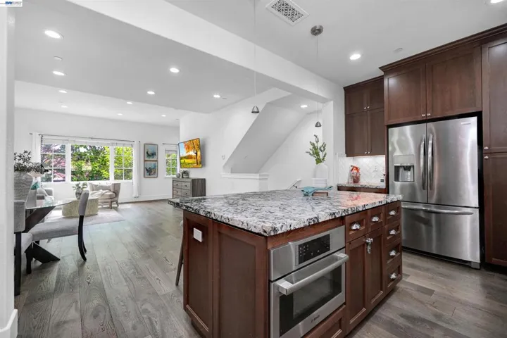 Welcome to 39567 Stevenson Place! Highly sought-after contemporary single family home in the Mission neighborhood! This beautifully maintained residence offers an exceptional blend of comfort, convenience, and modern living. Offering 4 bedrooms and 3.5 bathrooms with lots of natural lighting, the flexible floor plan includes a desirable ground-floor bedroom suite—perfect for guests, multigenerational living, or a private home office. The gourmet kitchen is a standout feature, complete with a gas range and oven, stainless steel appliances, an upgraded designer backsplash, and a spacious center island—perfect for meal preparation, casual dining, and entertaining. Designed to accommodate both relaxed daily living and gatherings, the home is in true move-in-ready condition, offering a seamless transition for its next owner. Additional features include EV charging, 2-car smart garage, balcony, and upgraded floors. Prime location provides close proximity to Fremont Central Park, Fremont Golf Course, top rated Mission schools (Gomes, Hopkins, and Mission San Jose), easy access 680/880 freeway, BART, shopping centers, and much more!