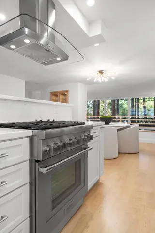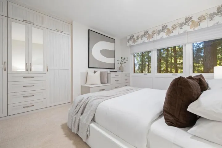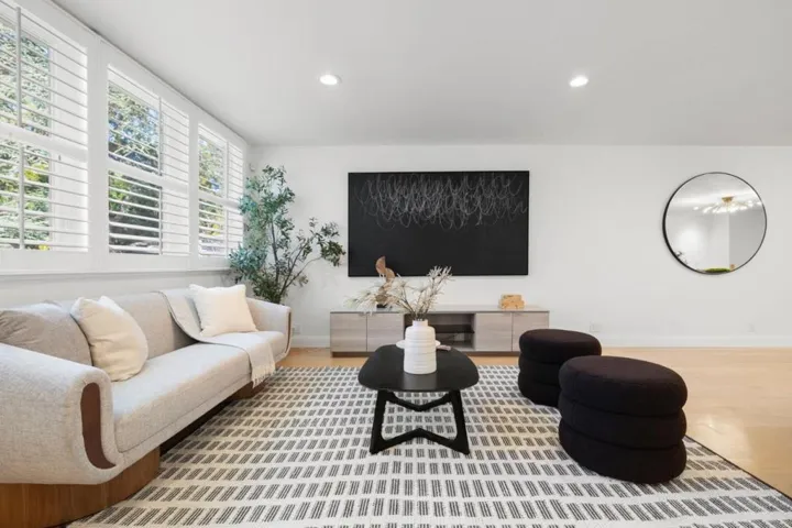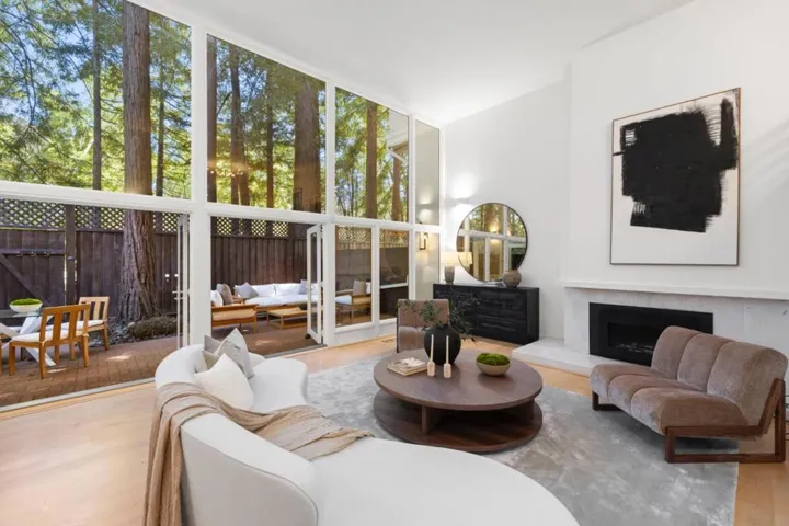 Modern sophistication meets natural serenity in this special enclave in Menlo Park. The open-concept main floor features a renovated kitchen equipped with Sub-Zero, Thermador, and Bosch appliances, flowing seamlessly into the family room and dining areas offering a wonderful flow.The dining area, features custom built-ins and a wine fridge, as well as offering a stunning and unique birds-nest perspective over the formal living room below. This dramatic, double-height living space is anchored by a floor-to-ceiling glass wall, providing a quiet and immersive view of the redwood-studded patio. The private quarters are equally refined, featuring a primary suite with a dedicated balcony and a beautifully updated ensuite bathroom with soaking tub. Two additional bedrooms share a hallway bath with a dual-sink vanity and stone counters. Recent owner upgrades include double-pane windows for sound and climate control, light hardwood floors, and custom California Closets throughout. This home includes a 220V EV-ready garage and a professional Culligan water system. Located blocks from the newly developed Springline, Santa Cruz Avenue dining, and Menlo Park Caltrain. Served by acclaimed Menlo Park schools.