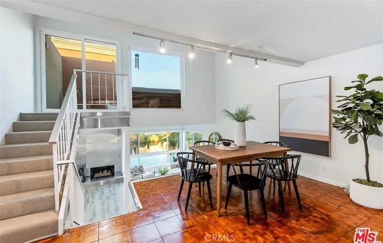 The split-level layout features teak wood floors, a custom fireplace, recessed lighting, and a chef’s kitchen complete with granite countertops, custom cabinetry, and stainless steel appliances. Additional highlights include two side-by-side parking spaces, ample private storage, and a dedicated bike room.