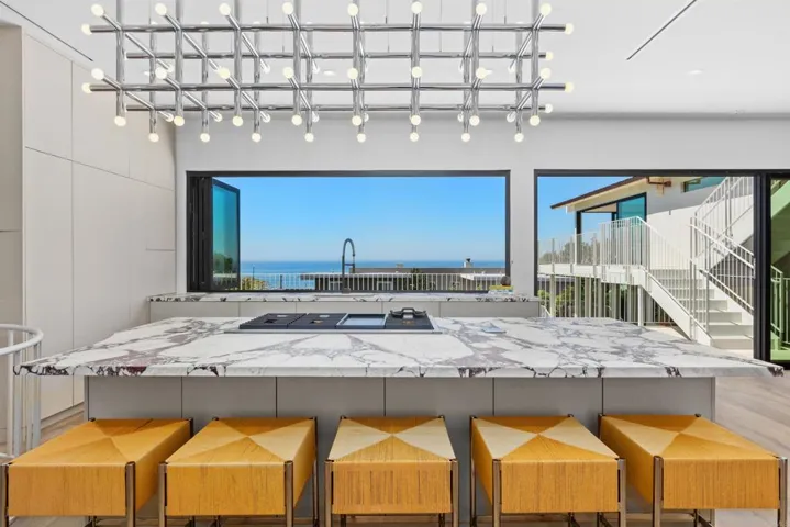 Step into a coastal masterpiece offering over 4,000 sq ft of refined living space, where every room is framed by sweeping, unobstructed ocean views. This exceptional home blends luxurious upscale design and wellness with features including: Five expansive ocean-view decks, over 1,800 sq ft, with vistas stretching to La Jolla and iconic surf breaks. Private outdoor retreat with a large grassy yard, stunning european style grass-edge pool, and oversized hot tub. Designer finishes throughout featuring Forms & Surfaces “Sunburst” entry doors, custom cabinetry and hardware, lighting by Serge Mouille, Isamu Noguchi, and Lightolier Temperature-controlled wine room for the discerning collector – Luxury wellness amenities including an infrared sauna, steam room, and cold plunge. Dual laundry for ultimate convenience. A show-stopping primary suite with a Hollywood-inspired open shower and freestanding soaking tub, all overlooking the Pacific. Dramatic cascading waterwall feature from a custom copper roof. Every detail has been thoughtfully curated to create a seamless indoor-outdoor coastal lifestyle unlike any other.