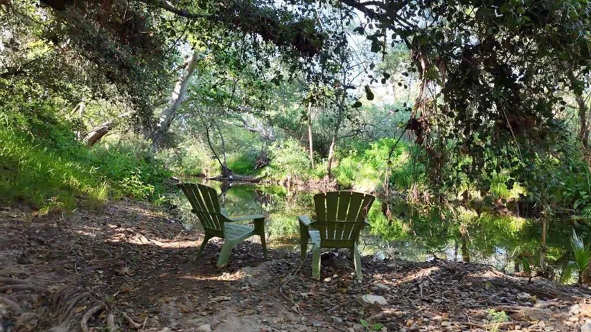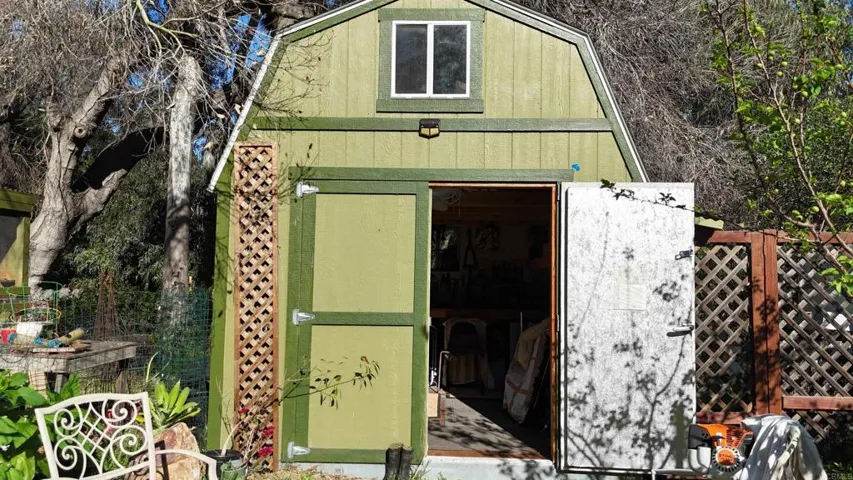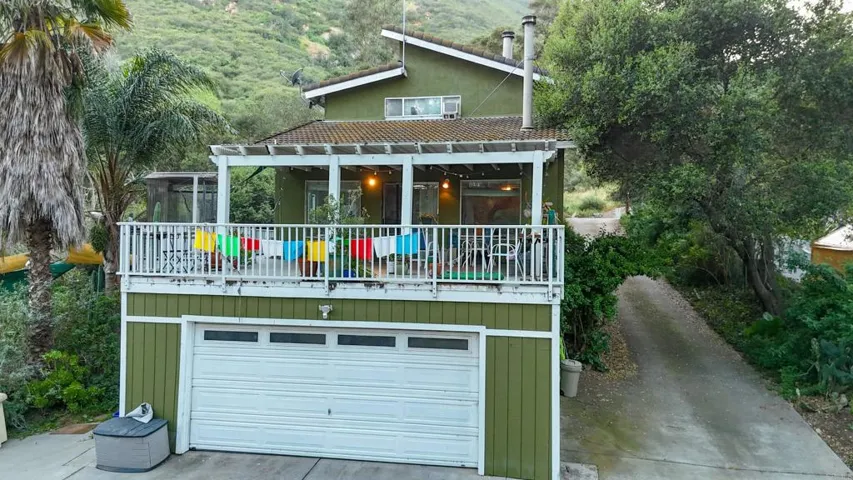 Diamond in the rough in sought-after Harmony Grove, set alongside Escondido Creek—one of San Diego County’s only year-round creeks. This rare 3.4-acre property offers an incredible opportunity to create your dream homestead with room to grow, farm, and thrive. Zoned A70 with Special Livestock and Agricultural designations, the property is fully equipped for a self-sustaining lifestyle. A 1,000-foot well, extensive irrigation lines throughout, and a 5,000-gallon water tank support the land, along with a newer full-house water filtration system. Solar is installed and will be paid off, offering long-term efficiency and savings. The grounds are rich with features for farming and outdoor living, including 45 fruit trees (many currently producing), grapevines, blackberry and passion fruit, large above-ground metal planters, and mature native landscaping with lavender and rosemary. A dedicated bee pad with cement base, fenced chicken coop (up to 20 chickens), large aviary, and corral (currently used for storage) make this a true working property. Horses are allowed (no direct trail access). Additional improvements include a fully insulated two-story Tuff Shed with power and water, a 500 sq ft workshop with 220V on a secondary meter, and RV parking for up to three vehicles. Fire safety features include a nearby fire hydrant, 400-foot fire hose, and an interior fire sprinkler system. The 2,700+ sq ft home offers a flexible and functional layout with a finished basement level featuring a half kitchen and attached 2-car garage—ideal for extended living, workspace, or guest use. The main level includes a bedroom, full bath, spacious kitchen, and living area with soaring wood-beamed ceilings. Upstairs are two primary suites, each with private balconies and breathtaking south-facing views. Enjoy seamless indoor-outdoor living with a wraparound deck overlooking the property, surrounded by mature oak trees and the peaceful sounds of nature. The property also features private access to multiple creekside areas—your own tranquil retreats within the land. A rare opportunity to own a one-of-a-kind property in Harmony Grove—full of potential, character, and natural beauty.