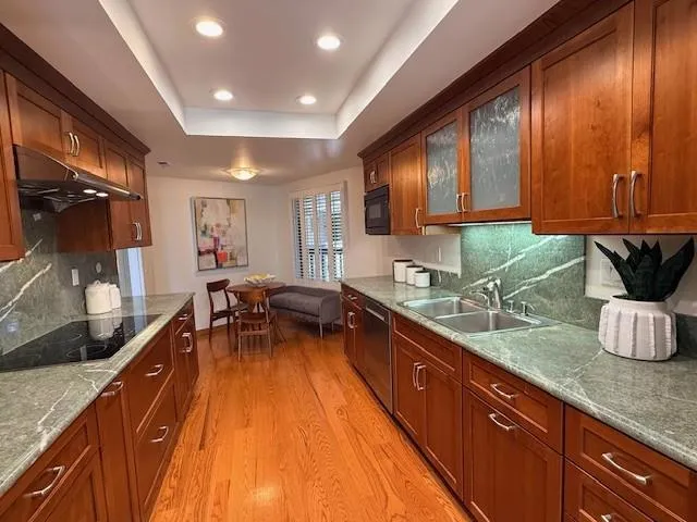 Rare, single-level condo in desirable Sharon Heights offering 2,160 sq ft of spacious, light-filled living. This exceptional home features a beautifully updated eat-in kitchen with warm wood cabinetry and striking green granite counters. The dramatic living room showcases a vaulted ceiling, hardwood floors, and a cozy gas fireplace. Entertain in the elegant dining room with picture windows overlooking the pool and mature trees. A centrally located patio offers the perfect setting to enjoy morning light and peaceful outdoor moments. The bright primary suite feels like a serene retreat with floor-to-ceiling windows and a peaceful, natural setting. The spacious primary bath includes a walk-in closet, dual sinks, and a separate shower, tub, and toilet room. Well-placed laundry and utility closet offers added convenience and extra storage. Conveniently located near Sharon Heights Shopping Center, Stanford, Sharon Heights Golf and Country Club, Sand Hill Business Center, and major commute routes. Located in the acclaimed Las Lomitas school district.