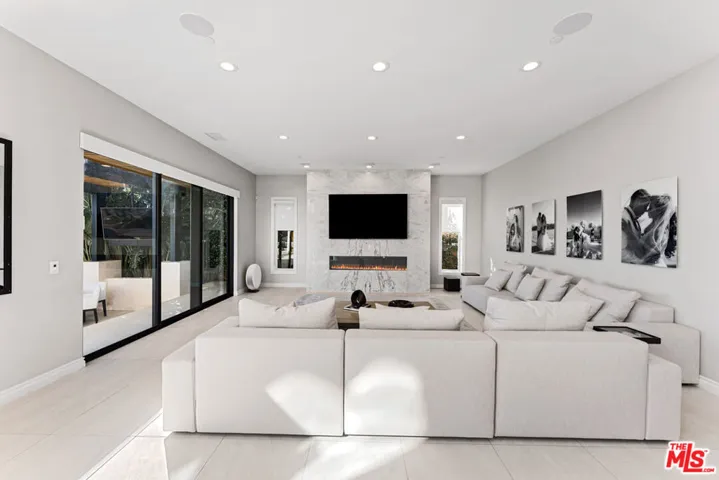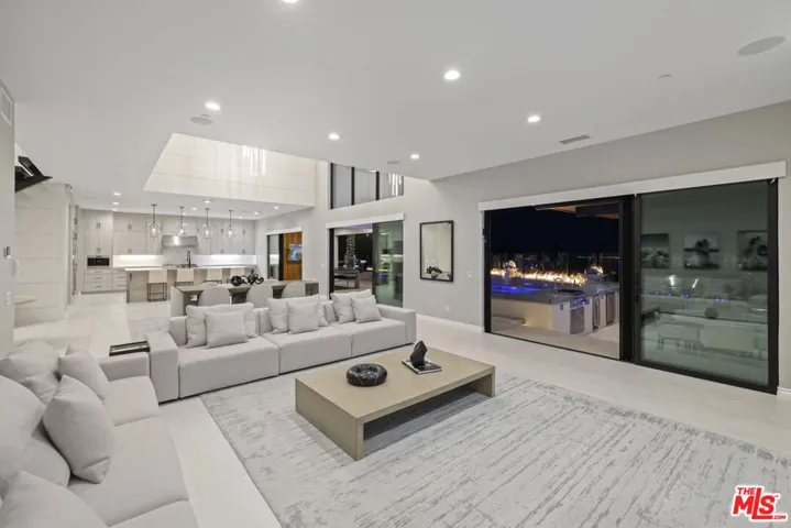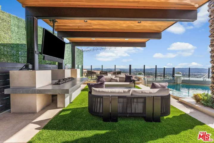 Exceptional gated Westcliffe one-of-a-kind estate offering privacy, luxury, and sweeping panoramic views of the entire San Fernando Valley. Ideally located at the end of a cul-de-sac on a 13,000 sq. ft. lot, this personal gated residence blends modern elegance with resort-style living. This two-story home features 5 bedrooms + loft and 5.5 bathrooms, including a versatile main-level suite with kitchenette. A dramatic entry showcases architectural wall paneling and a dual floating staircase. Interior highlights include European oak flooring, premium tile finishes, Phillip Jeffries wallpaper, in-ceiling speakers, and Hunter Douglas motorized window coverings throughout. The chef’s kitchen is equipped with Sub-Zero and Wolf appliances, including a wine refrigerator. The expansive primary suite offers stunning valley views and a custom California Closets walk-in with integrated LED lighting and dual islands. An upstairs den provides a private movie room with projector and 120″ screen. Resort-style backyard features include a saltwater pool with Baja shelf and spa, waterfalls, fire feature, two floating pergolas, outdoor TVs, and over 15 speakers. The outdoor kitchen includes a Lynx BBQ suite with premium appliances for elevated entertaining. Additional amenities include a two-car garage with sleek epoxy flooring, a converted third-car garage currently used as a luxury in-home performance gym, and an extended private driveway offering parking for up to six vehicles. Lush landscaping, commercial-grade palms, and 22-foot privacy hedges complete this private luxury retreat. A rare opportunity in one of Porter Ranch’s most coveted gated communities.