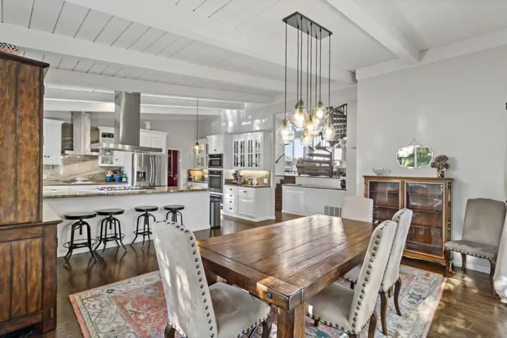 Set atop a coveted Emerald Hills street on a rare flat 12,183 sq ft lot, this beautifully staged 3650 residence offers an exceptional blend of comfort, style, and family-friendly living. The home features a spacious single-level layout with an expansive primary retreat, a dedicated office opening to the patio through elegant French doors, and a separate bedroom wing that creates ideal space for children, guests, or multigenerational living. The large primary suite includes a sitting area and private access to a balcony with hot tub. Bay views from the living room, living room patio, and upstairs reading nook add a special sense of openness and serenity. Designed for both everyday ease and memorable entertaining, the backyard is a true highlight, with new landscaping, a new patio, outdoor kitchen, sauna, swim-current pool, and mature fruit, rose, and herb gardens. Inside, the home feels warm, upscale, and inviting, with curated finishes, a polished sensibility and premium Miele appliances. Just moments from the best of the Peninsula. This is a rare opportunity to enjoy the Emerald Hills lifestyle at its best. Roy Cloud District. Minutes to 280, Elks & Edgewood Park hiking.