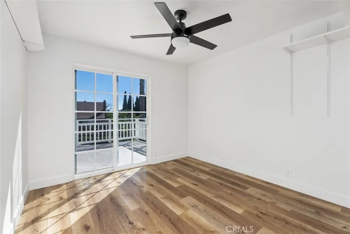 The home has been newly painted inside and out in neutral tones and features light-toned wood flooring throughout. An inviting foyer leads to the living room which includes a fireplace and sliding doors that lead to the backyard equipped with built-in barbecue and a brand-new refrigerator. The property includes a small separate unit in the back, ideal for a studio, office or playroom .The spacious bedroom features two separate closets and a private balcony overlooking the pool. Two ample secondary bedrooms upstairs across the hall open onto a large deck situated on the top of the two car garage, offering exceptional outdoor entertaining space.