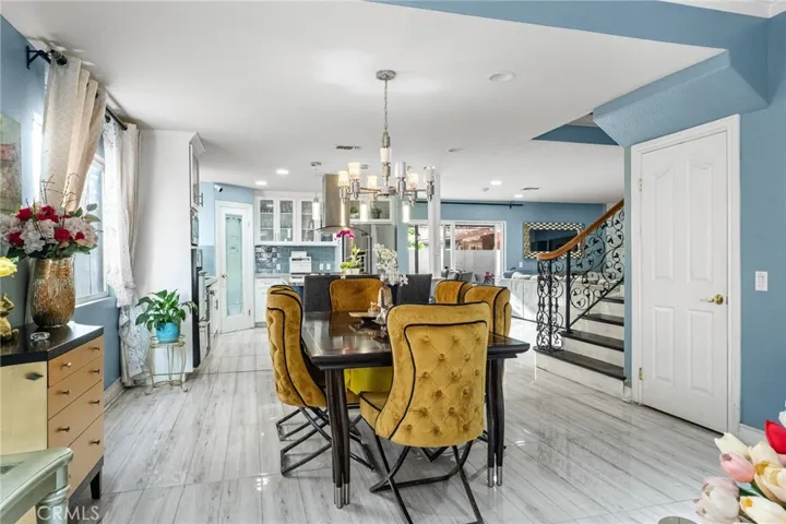 Step inside to find ceramic flooring throughout the main level, complemented by crown molding and recessed lighting that add warmth and elegance. The open-concept layout seamlessly connects the living area to a stylish kitchen featuring marble countertops, a large center island, pendant lighting, and a walk-in pantry perfect for both everyday living and entertaining. An updated fireplace creates a cozy focal point in the living space.
