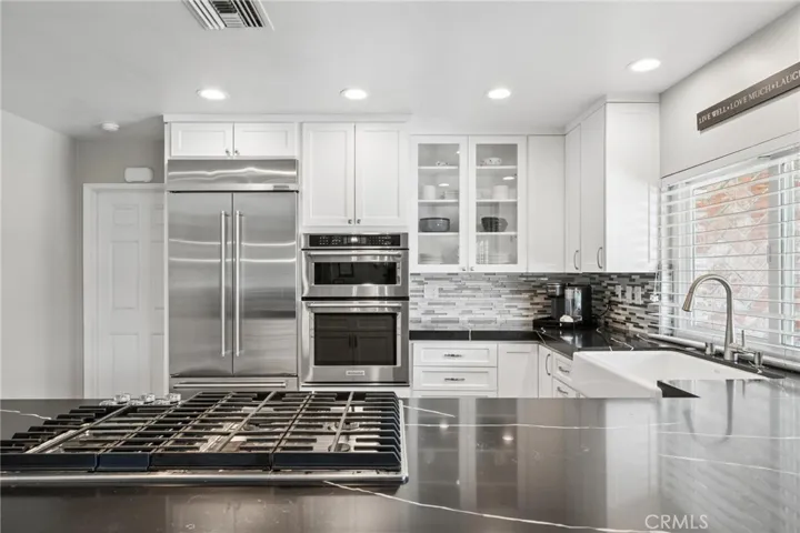 Truly amazing, remodeled Sand Canyon single story pool home on a huge usable lot! Blending the maturity of the beloved “Woodlands” neighborhood with a home that has been recently updated inside AND out, we present this gem of a property. With over two thirds of a usable acre, there are essentially two distinct back yards with the back section offering a lighted tennis/basketball/pickleball court and true RV with private access coming off Clearlake drive. Redone in 2020, the backyard features truly amazing stone paver hardscape, full-sized pool with auto cover, gas fire pit, full length patio cover PLUS a detached gazebo, BBQ and gorgeous stack stone hardscape. Plenty of room to entertain. Inside the kitchen & all 3 full baths have been tastefully redone in current colors and finishes. Structural improvements include newer roof (2023), windows (2017) & Carrier HVAC with ducting and Generac whole house system (2025). Last but definitely not least, the seller converted from septic to sewer (2021). Throughout the home you will feel that it has been consistently updated in a way that emphasizes quality more than cost. Other nice touches include updated lighting, barn doors, crown and base molding and updated flooring. The 5th bedroom has been converted into a huge walk-in closet off the primary bedroom with built-ins. 3-car garage with EV charger too. Featuring the largest yard and home available in this price range without HOA or extra Mello Roos taxes, this is the definition of great value for money. Rarely does a home like this come available!
