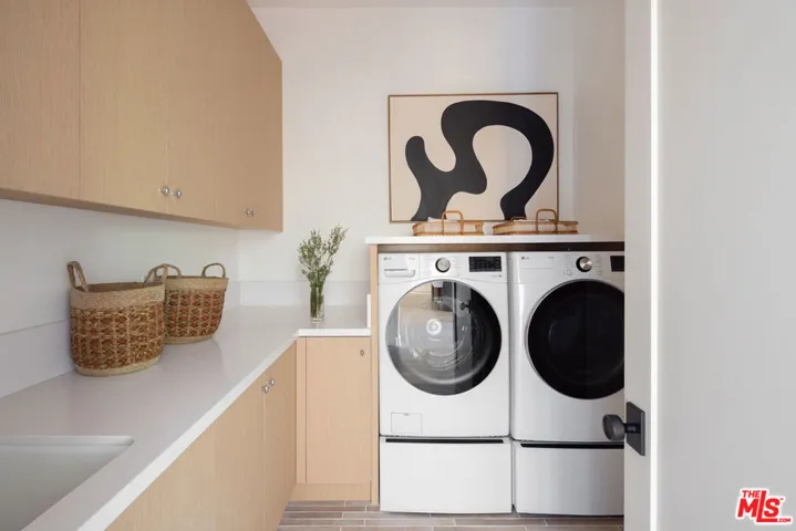 Welcome to this gated, 2025 single-story modern farmhouse compound in Walnut Acres Estates, newly finished with beautiful materials and set back from a tree-lined street with a pickleball court, an abundance of outdoor gathering space, and sparkling pool and spa. A sizable motor court is set amidst carefully placed drought-tolerant landscaping and cozy sitting areas under shade trees. Through a beautiful curved glass-paned front door, visitors discover high ceilings, warm woods, and organic hues throughout. The living room is centered by a stone fireplace flanked by thoughtfully designed built-in book cases that continue the home’s casual, artistic vibe. The kitchen is grand and elegant, with custom cabinetry, state-of-the-art appliances including a commercial-grade range with smartly designed hood plus pot filler, and oversized center island. The adjacent butler’s pantry perfectly connects to the formal dining room for catering and entertaining. Nearby is a glass-encased wine cellar and a plush theatre/screening room. In the owner’s wing, sliding glass opens to gardens and patios for effortless indoor-outdoor living. The primary bath is large, with a dual-sink vanity, soaking tub, and rainwater shower adjacent to the walk-in wardrobe with custom built-ins. Secondary bedrooms are also en-suite, and one is currently utilized as an office. Privacy hedges surround the backyard, with its variety of spaces to relax, recline, and converse, including a covered outdoor living room, al-fresco dining area, and barbecue with prep sink and bar ledge. Enjoy the shimmering waters of the pool and spa, roam and play on the grassy lawn, or challenge friends to a game of pickleball or basketball on the sport court. Effectively new construction and never before lived in. Welcome to an ideal location close to parks, schools, houses of worship, and the 101 Freeway, just moments to the Calabasas Commons, Westfield Topanga and Village, and upcoming Rams Village at Warner Center. Top-rated Woodlake Avenue Elementary School.