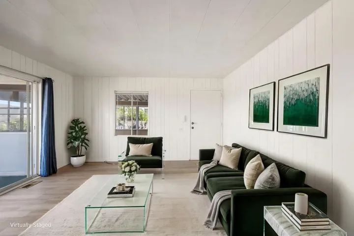 Views – Unmatched Panoramic views can be enjoyed from the private open-air back porch, enclosed wraparound porch, and from within the living and dining areas. The spacious interior features separate living and family rooms, offering flexibility for both relaxing and entertaining, while each bedroom includes its own attached bathroom for added comfort and privacy. Additional highlights include dual carports on either side of the home for convenient parking, a wheelchair ramp for accessible entry, fresh interior and exterior paint, and a large 22′ x 10′ workshop ideal for storage or hobbies. Located in Rancho Vallecitos, a beautifully maintained 5-star, resort-style 55+ community (second resident may be 45+), residents enjoy a wide range of amenities including a clubhouse/recreation center, pool and spa, library, fitness center, billiards room, card and game rooms, craft space, putting green, dog park, and optional RV parking. Monthly space rent is $726 and the community is under city rent control.