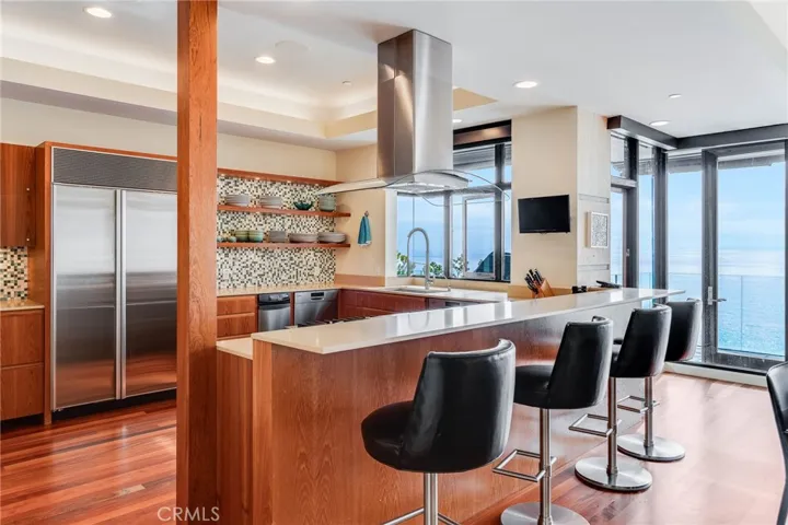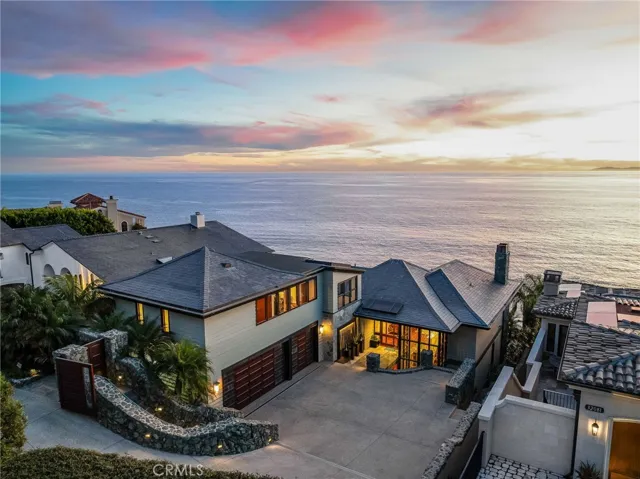 How amazing to have front-row seats to the ever-changing theater of the Pacific Ocean – a unique performance every day and night, where the sun melts into the horizon, and dolphins drift past like unannounced guests. The oceanfront estate at 32091 Coast Highway offers these seats daily – a beautifully crafted, gated home with amenities that make leaving feel unnecessary. From the moment you arrive through the gated motorcourt, the home reveals itself slowly – glass, stone, and warm materials drawing your eye to the endless horizon. Walls of disappearing glass open nearly every space to terraces, breezes, and uninterrupted views. Entering the living level, finished in a soothing blend of luxurious textures and colors, frames the special oceanfront setting. Dining and a bespoke kitchen with top-line appliances are distinct from the living area yet visually open, presenting an incredible ocean-view sweep from this level. This space also includes a full bar, climate-controlled wine storage, and disappearing glass walls that open much of the level to the view terraces. The lower level hosts four en-suite bedrooms, including the primary suite – a generously sized retreat unto itself, with floor-to-ceiling glass and refined design detail, the architectural pedigree is on full display. The fifth bedroom, along with an office or gym, spa bath with steam and sauna, and a ‘sky terrace’ complete the upper level, offering separation from the main living spaces. As calming as the interiors are, it is the ocean view decks and terraces that captivate. Multiple levels of flagstone decks create intimate corners for morning coffee, sunset dinners, or evenings beside the crescent-shaped outdoor fireplace. Here, the ocean becomes part of daily life – its colors, sounds, and shifting light changing by the hour. The spaces invite large gatherings while offering intimate vignettes. In addition to the ‘front row’ seats to the Pacific, this property offers features not often found in oceanfront homes: oversized three-car garage with motorcourt, private gated drive/pedestrian access, generous space, abundant storage, meticulous care by the current owner, sauna and steam rooms, and the ability to easily lock and leave should you choose to travel (though, why would you need to?). This estate provides a VIP experience without compromise – an opportunity to acquire a stunning residence along one of the most beautiful coastlines in the world.