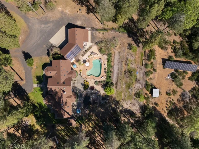 Nestled among the towering pines of Forest Ranch, this extraordinary estate showcases breathtaking views and an unmatched sense of serenity. Set on 23 private acres, the property boasts a sparkling in-ground pool, owned solar, & an expansive four-car garage—just the beginning of what this remarkable retreat offers. Step inside to soaring 23-foot cathedral ceilings & an abundance of windows that perfectly frame the picturesque surroundings. The great room is both inviting and impressive, featuring skylights, a stunning stone fireplace, & ample space for entertaining or cozy evenings at home. Just off the main living area, a versatile den offers endless possibilities—whether a home office, game room, or additional lounge space. Elevate your culinary experience in the thoughtfully designed gourmet kitchen, complete with Brazilian cherry hardwood floors, Corian countertops, cherry wood cabinetry, white tile backsplash, a gas range, a center island with a vegetable sink, & an expansive walk-in pantry with shelving and freezer space. The sunlit breakfast nook provides the perfect setting to enjoy your morning coffee while taking in the tranquil views. The luxurious primary suite is a private sanctuary designed for comfort & relaxation, featuring elegant tile flooring, custom oak built-ins, & a spa-inspired en suite bath with dual vanities, a soaking tub, walk-in shower, spacious closet, linen storage, grooming area, & bidet-equipped toilet. What truly sets this home apart is the indoor endless pool for year-round swimming and fitness. Additional highlights include three guest bedrooms, ceiling fans throughout, recessed lighting, dual HVAC systems, & an indoor laundry room with oak cabinetry and a utility sink. Outdoors, enjoy a beautifully designed in-ground pool, expansive patio, fully fenced backyard, hot tub, firewood storage building, & two serene koi ponds with a cascading waterfall. Fruit trees dot the landscape, and with 23 acres, there is endless opportunity to expand and make it your own. The property is accessed via a gated entrance shared with neighboring homes, adding privacy and security. Offering a rare blend of comfort and beauty, this exceptional property is truly one you don’t want to miss.