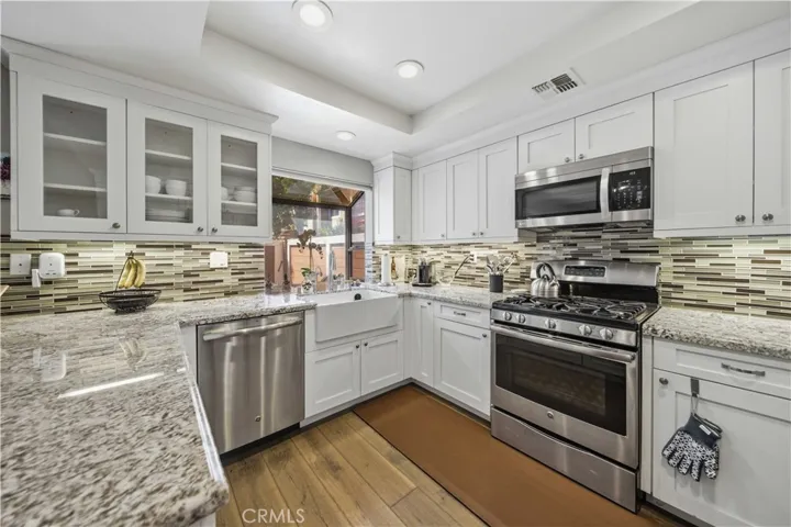 This 3 bed, 3.5 bath home has every bedroom with its own en-suite, including one bedroom conveniently located downstairs, plus an additional half bath for guests. Vaulted ceilings, skylights, and an open floor plan make the space feel bright, airy, and inviting. The chef’s kitchen features granite countertops, stainless steel appliances, a walk-in pantry, and french doors that open to a private patio – perfect for entertaining.