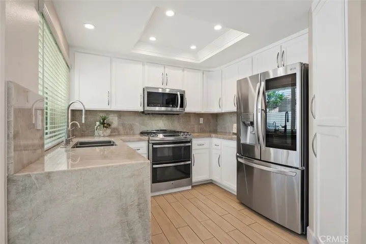 Completely remodeled and turnkey, this 3-bedroom, 2.5-bathroom, 1,601 sq. ft. home is located in the private gated community of Bayview Terrace. Set within a private compound, the residence features custom paint, molding, floorboards, triple-pane windows, wood shutters, LED lighting, porcelain tile flooring throughout, and a Quartzite stone fireplace. The gourmet kitchen includes stainless steel appliances, premium finishes, and a layout suitable for entertaining. The primary suite features new window shutters and LED lighting. The spa-inspired primary bath includes Quartzite counters, a full Quartzite slab shower with bench, Toto toilet, porcelain tile, built-in vanity with lighting, custom closet doors, and a cabinet above the vanity.