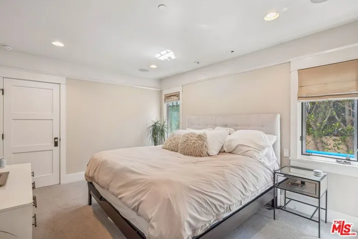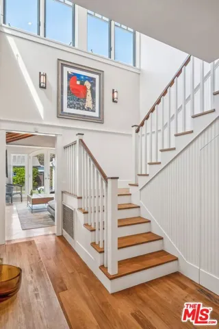 Welcome to this inviting craftsman-style home on a sunny corner lot in Santa Monica. With 2,872 square feet of living space on a 7,000 square foot lot, this residence offers five bedrooms and five and a half bathrooms, including four en suite bedrooms for added privacy, plus a bonus room that can be used as an office, playroom or an extra bedroom. The open kitchen and family room create a bright, comfortable space for daily living or entertaining, with direct access to a private backyard featuring a built-in barbecue, patio heating and lighting, and mature ficus trees. The kitchen is equipped with stainless steel appliances, a double oven, and a five-burner cooktop. Enjoy both indoor and outdoor fireplaces, a welcoming front porch, and outdoor patio sets. A 240-volt outlet is available for EV charging.