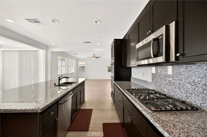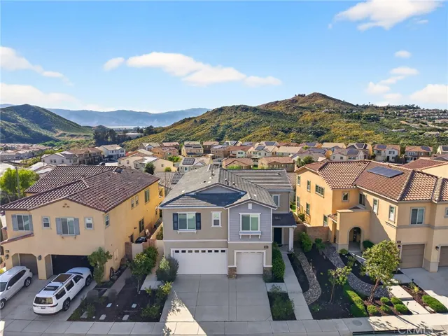 Nestled away within the exclusive, gated Canyon Hills Westridge community, this exceptional residence feels like a private slice of paradise. Perched on a premium lot, it captures breathtaking, panoramic views including Lake Elsinore and Canyon Lake—a daily backdrop that turns every sunrise and sunset into a serene escape. Impeccably maintained and styled like a model home, this 4-bedroom, 3-bath retreat welcomes you with an airy upstairs loft, perfect for relaxation or inspiration. The kitchen is a true culinary sanctuary, adorned with rich espresso cabinetry, gleaming granite countertops, and high-end GE Appliances—including a double oven and an expansive island designed for gathering, entertaining, and creating unforgettable moments. Host elegant dinners in the formal dining room, complete with a butler’s pantry and abundant storage, or unwind in your luxurious primary suite—a tranquil haven where spa-like comfort meets everyday living. Soak in the tub as if on vacation, enjoy the separate shower, dual vanities, and a spacious walk-in closet designed for indulgence. Step outside to a beautifully designed, low-maintenance backyard featuring a covered patio—perfect for year-round enjoyment as you take in sweeping views. Inside, thoughtful touches like high ceilings, custom lighting and ceiling fans. Beyond your doorstep, the community invites you to live the resort lifestyle, with amenities including a scenic 2-acre park, a dedicated dog park, sparkling pool and spa, outdoor showers, BBQ areas, fire pits, and sports courts. This is more than a home—it’s a destination, ready to welcome its next owners into a life of beauty, comfort, and effortless luxury.