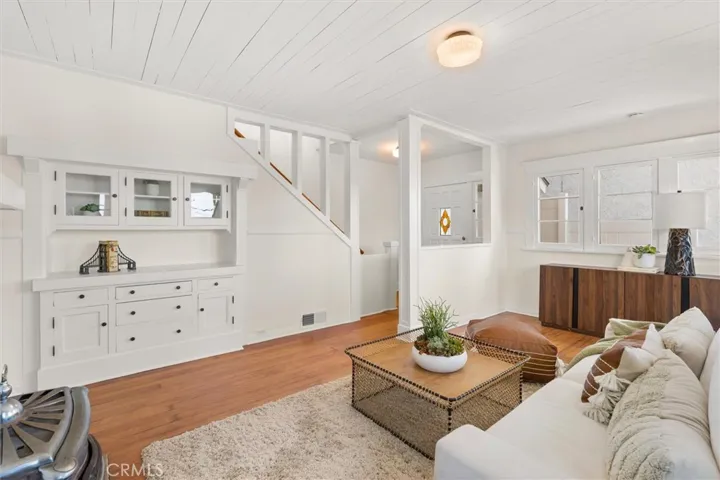Views, Charm and Nostalgia welcome you the this historic 1918 move-in ready home tucked away in the Holy Trinity area, originally built for Ralph Daniels principal of San Pedro High School from 1913-1919 and whom Daniel’s field is named after. Abundant sunlight enters the house through its many original wood framed windows. This property features a built-in buffet, book cases, a built-in seat bench, private patio, and French doors opening to a spacious balcony with stunning harbor ,ocean and coastline views. Spacious living and family rooms with loads of original custom woodwork, each featuring a fireplace. One of the bedrooms can readily be utilized as a home office with its French doors and ample views to enjoy. The home has been completely painted inside and out and the Douglas fir hard wood floors have all been refinished. The open dining and kitchen area seamlessly connects to a spacious covered patio providing and ideal setting for entertaining guests. The kitchen features brand new appliances and each bathroom offers clawfoot tubs along with all-new plumbing fixtures. Off street parking features a detached two-car garage and two additional spaces. The whole property is fenced in with custom vinyl fencing and block walls for your privacy. In addition, the property features a spacious, partially finished basement designated for utility and workshop purposes.