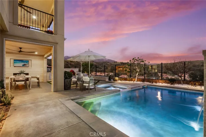 Offering a Warm Organic Modern Vibe this Luxurious Entertainer’s Paradise Embodies Model Quality Design, Contemporary Functionality and Breathtaking Panoramic Views! Seamlessly Blending Artisanal Style with a Modern Floor Plan and FULLY PAID OFF SOLAR, this home checks all the boxes! An Unparalleled Residence, 33 Cielo Azul Curates Stunning Designer Landscaping and Functional Indoor/Outdoor Living. Discover the Tranquil Backyard Oasis, Custom Outdoor Covered California Room w/Fireplace and a Spectacular Multi-Panel Stacking Door that allows the Great Room to fully open up to the backyard. Upon entry the Luxury Upgrades and On-Trend Design Details are immediately distinguished with Neutral Toned Flooring, Rustic Natural Wood Feature Walls, Blue Knotted Wood Paneling Dining Room Ceiling, Opulent Restoration Hardware Chandelier, Built-In Speakers and High Ceilings allowing for an Abundance of Natural Light. The Spectacular Chef’s Kitchen features Luxurious High End Upgrades including Quartz Countertops, Stainless Steel Appliances, 6 Burner Gas Stove, Sub Zero Refrigerator, New Oven, Pot Filler, White Cabinets w/ Glass Inserts, Massive Center Island w/ Bar Seating, Walk-In Pantry, and Restoration Hardware Pendant Lighting. The Downstairs Bedroom and Full Bathroom offers Incredible Flexibility for the Modern Day Buyer. Follow the Upgraded Staircase Upstairs and discover the Spacious Multi-Purpose Loft, Laundry Room, Two Guest Bedrooms, Two Full Bathrooms and the Spectacular Primary Suite Retreat. Enjoy the Breathtaking Sunrise & Sunset Views off the Balcony of Primary Suite complete with Custom Electronic Black Out Shades. Creating a Personal Experience the Primary Suite features a Custom Multi-Use Lounge Zone with Built-In Shelving and Beverage Fridge. Relax Your Mind in the Designated Restorative Enclave in your Primary Suite Retreat. Begin your Wellness Routine in the Spa Like Primary Bath Perfectly Designed w/On Trend Details including a Soaking Tub, Massive Walk-In Shower w/ Dual Shower heads and Custom Walk-In Closet Designed by California Closet! Outside your DREAM BACKYARD awaits with Perfectly Balanced Lush Landscaping, Stone Hardscape, Designer Herringbone Tile, Wood Shiplap Walls, Incredible Pool & Spa w/ Tranquil Water Features and Timeless Stunning Panoramic Views that need to be seen in person to be fully appreciated. The Private Picturesque Elevated Location is Unique to this Incredible Trophy Residence! This one is special!
